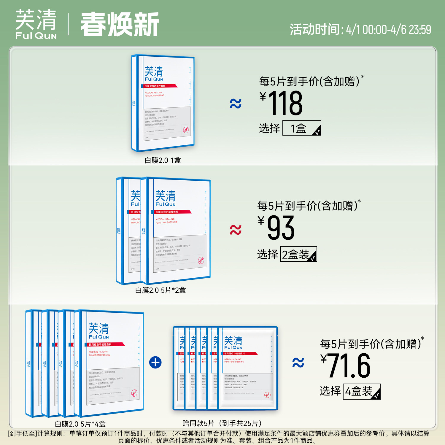 天猫【专享】芙清白膜械号医用敷料痘痘医美术后修复改善痤疮非面膜