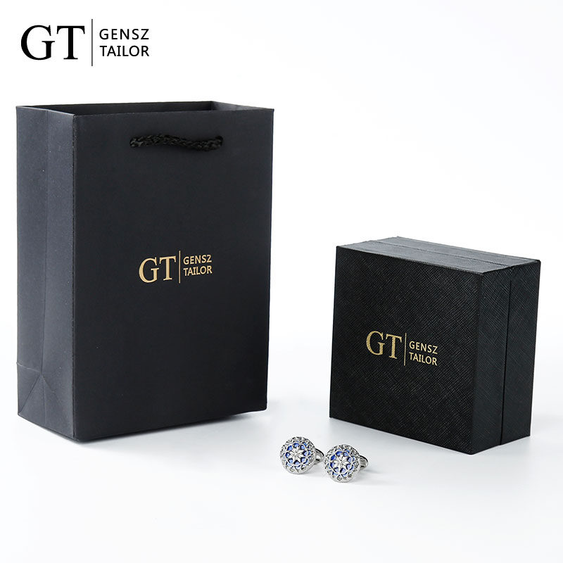 淘玛诗杜袖扣男轻奢法式衬衫电镀白金水钻袖钉刻字定制男生礼物刻字