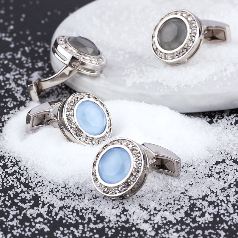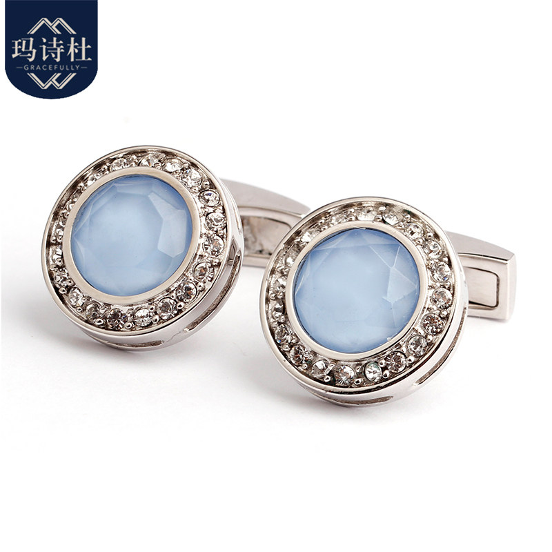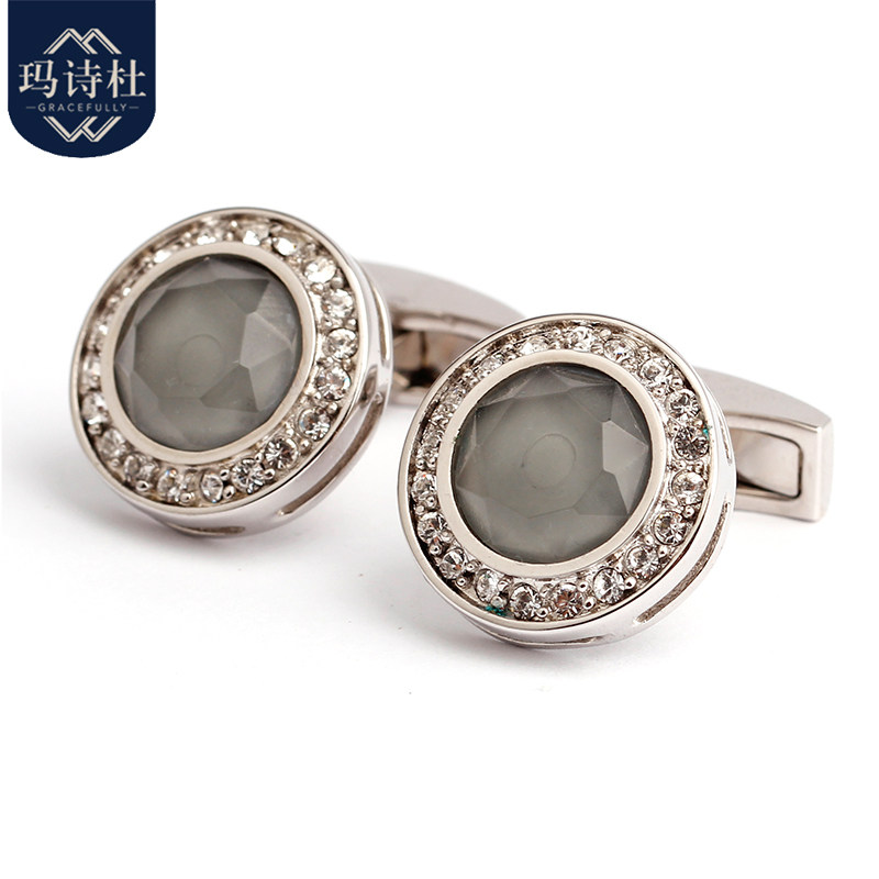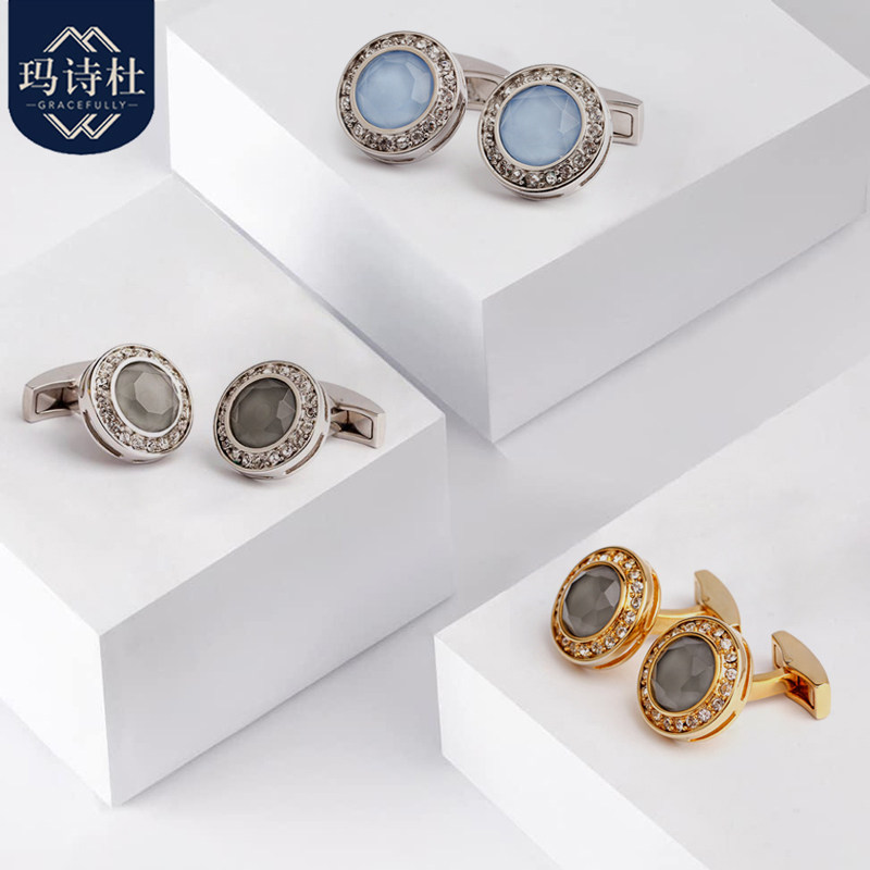 淘宝玛诗杜袖扣男轻奢法式衬衫电镀白金水钻袖钉刻字定制男生礼物刻字