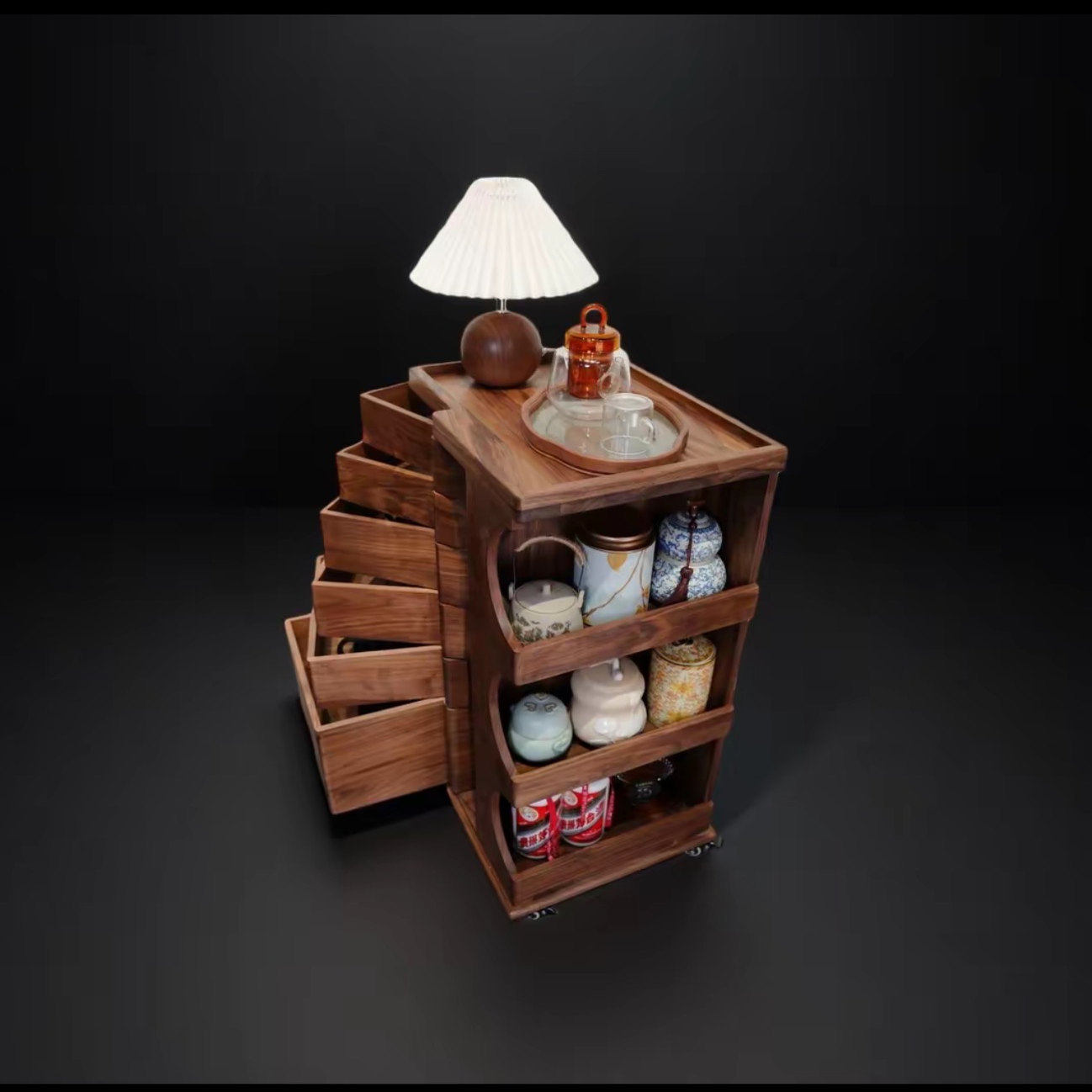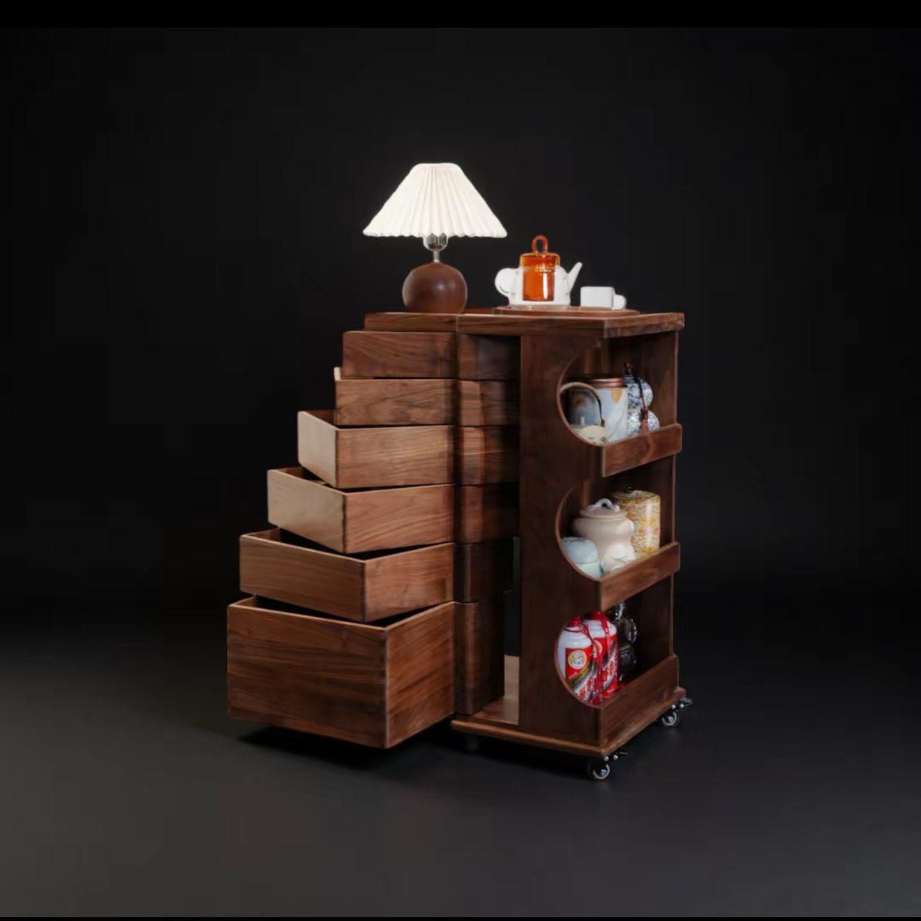 淘宝北美黑胡桃实木带轮移动多功能旋转抽屉收纳柜 50*38*80cm