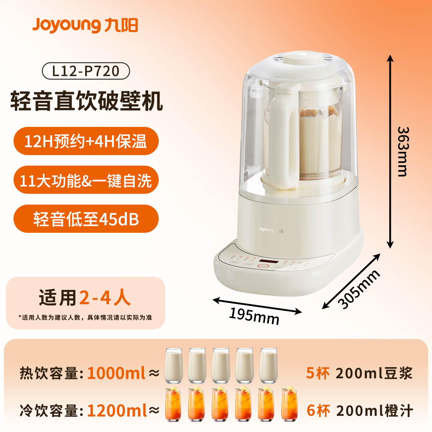 九阳轻音破壁机P720是一款集多功能于一体的家用智能料理机,拥有大容量设计,满足全家人的饮食需求。采用先进的降噪技术,运行声音低至55分贝,实现轻音破壁,不打扰日常生活。搭载强劲电机与精钢八叶刀头,轻松粉碎食材,释放营养,制作豆浆、米糊、浓汤、辅食等无需过滤,口感细腻顺滑。支持一键全自动操作,智能预约与自动清洗功能,省时省力。触控面板简洁直观,多种预设程序满足不同食材需求。P720兼顾高效、静音与便捷,是现代家庭健康饮食的理想选择,让营养美味轻松上桌。