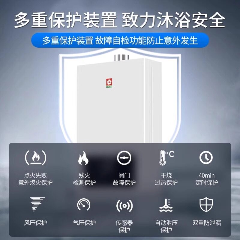 樱花燃气热水器13升L液化气款,专为家庭洗浴设计,搭载高效节能技术与智能恒温系统,确保出水温度稳定舒适,告别忽冷忽热。采用强排式设计,废气强制排出室外,安全更有保障。适配液化气,安装便捷,适合多种户型。13升大容量满足多口之家连续用水需求,淋浴、洗漱同时进行也不在话下。官方旗舰店直售,品质有保障,享受正品售后与贴心服务。樱花品牌专注厨卫电器多年,以可靠性能与人性化设计赢得用户信赖,是您打造舒适家居生活的理想之选。节能省气,恒温洗浴,安心之选。