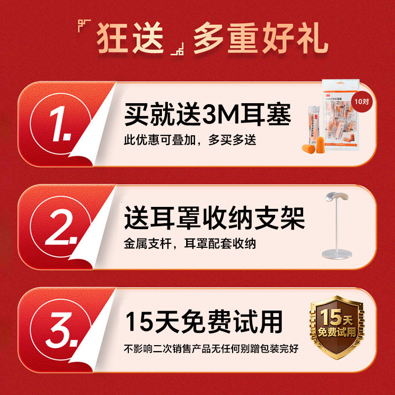 天猫3M X5A 隔音耳罩 X系列耳罩 睡眠耳罩防噪音静音睡眠工业降噪学习