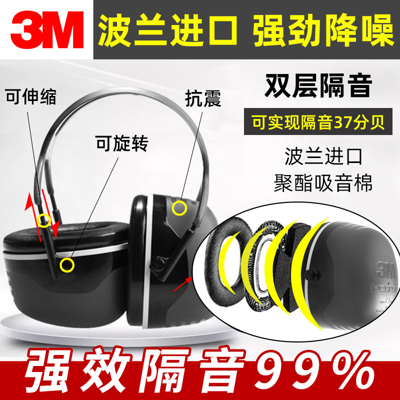 淘3MH540A隔音耳罩睡眠用专业降噪学习睡觉专用神器工业级静音耳机0