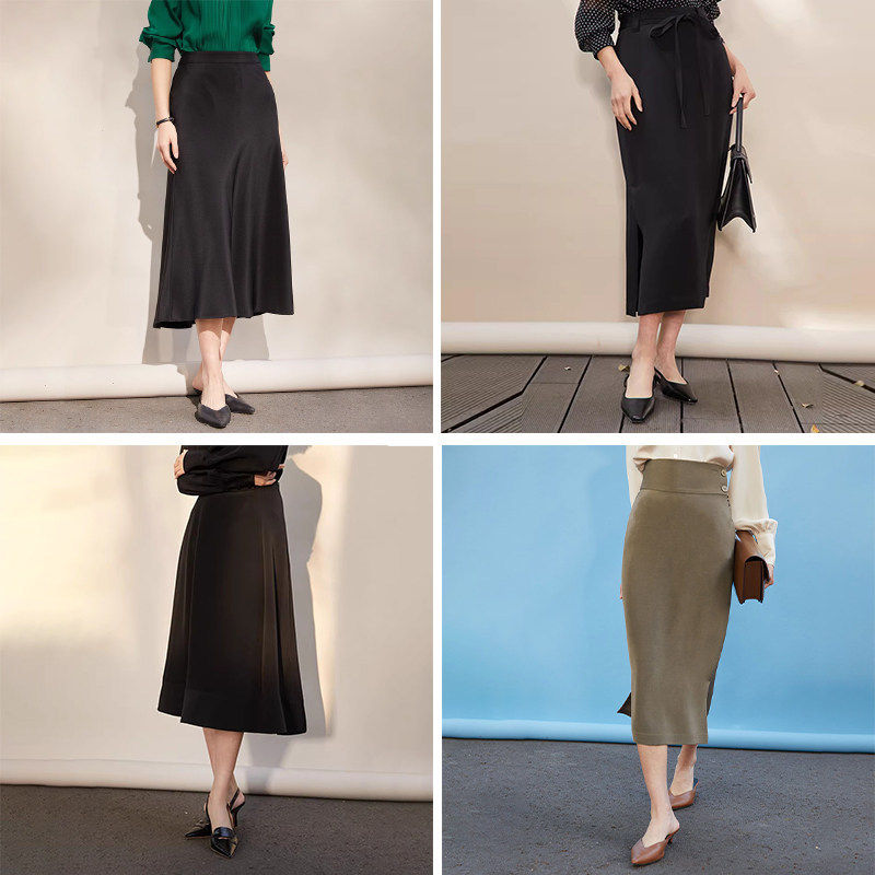 天设计师款佐丹奴直筒裙女装垂感西装通勤后中开叉半身长裙18464940