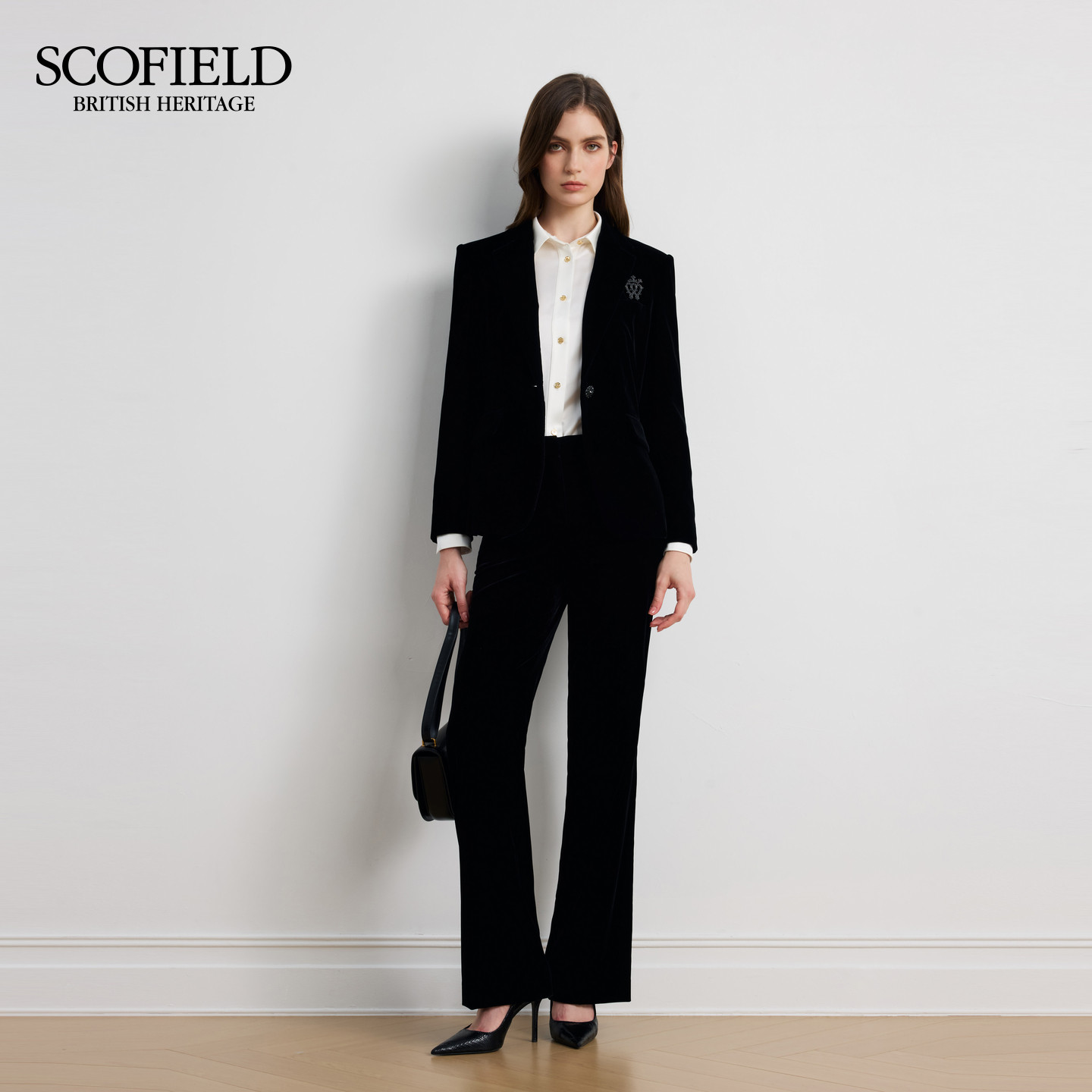 Scofield女装早秋系列推出的平驳领光泽感丝绒西装外套,以经典与现代交融的设计诠释优雅力量。采用高品质丝绒面料,自带低调华美的光泽感,触感柔滑,垂坠有型。平驳领设计简约利落,搭配挺括肩线剪裁,勾勒出干练利落的肩部轮廓,彰显女性自信气场。整体版型修身而不紧身,兼顾舒适与廓形感,轻松驾驭通勤、约会或轻社交场合。细节处注重品质,金属纽扣点缀提升精致度。无论是搭配高腰裤还是半身裙,都能展现知性又不失时髦的早秋穿搭风格,是都市女性衣橱中不可或缺的时尚单品。