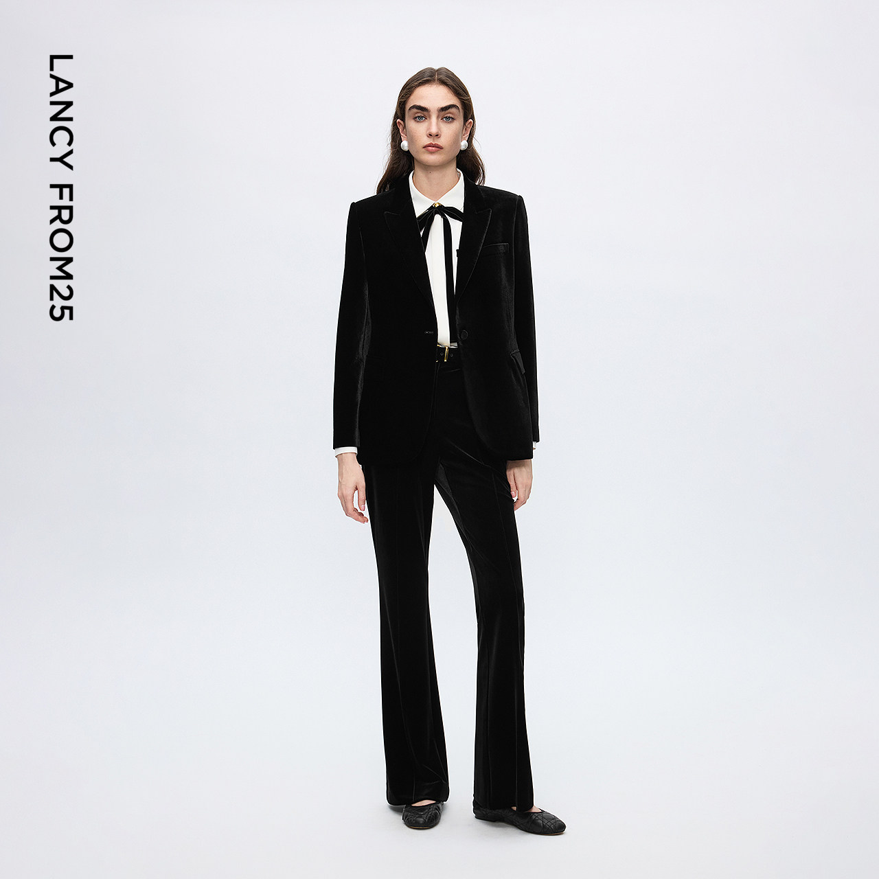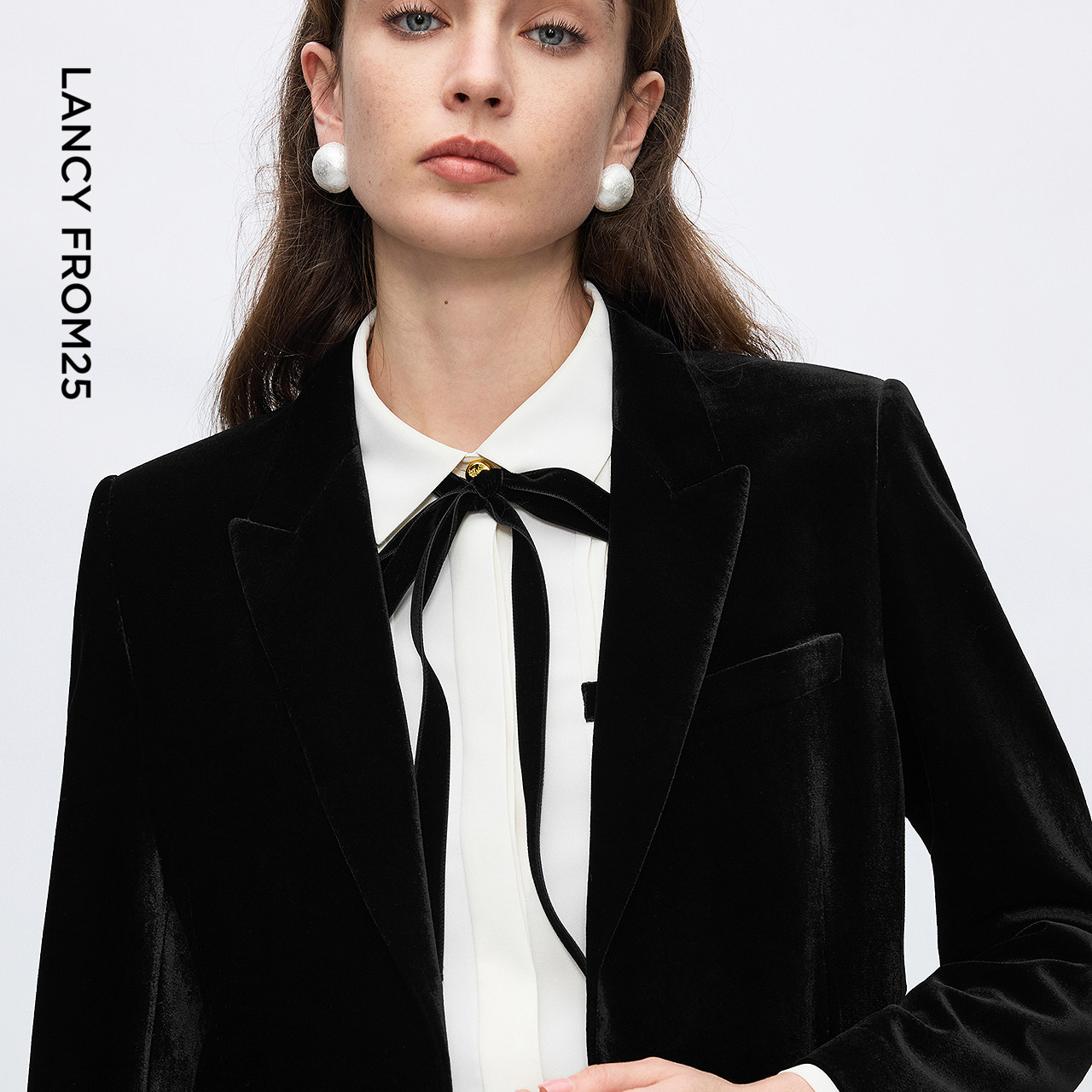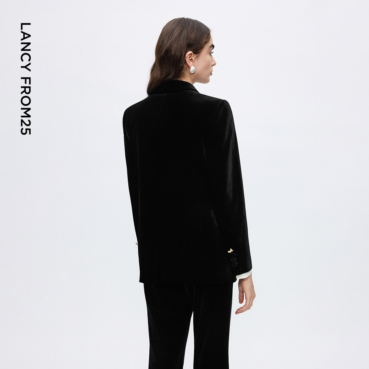 天猫朗姿丝绒复古摩登气质高级感西装收腰廓形上衣女2025新款冬季新款