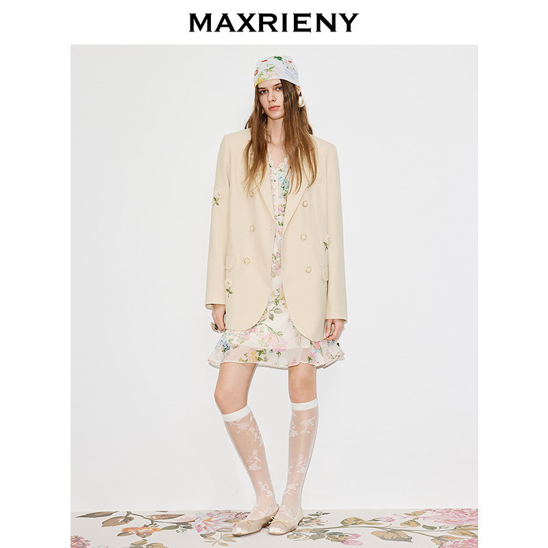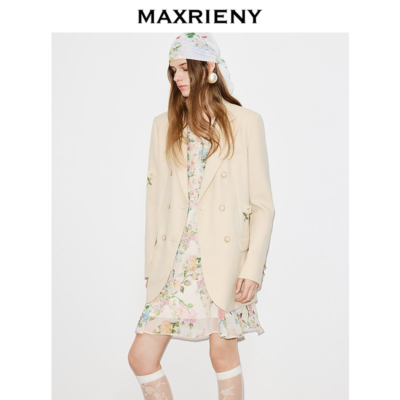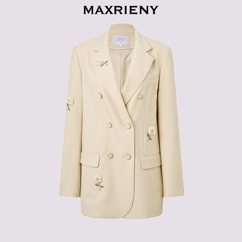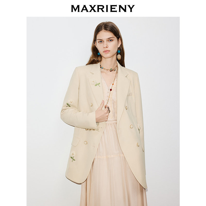 天猫【商场同款】MAXRIENY杏黄色双排扣西装外套女2026年春季新款西服