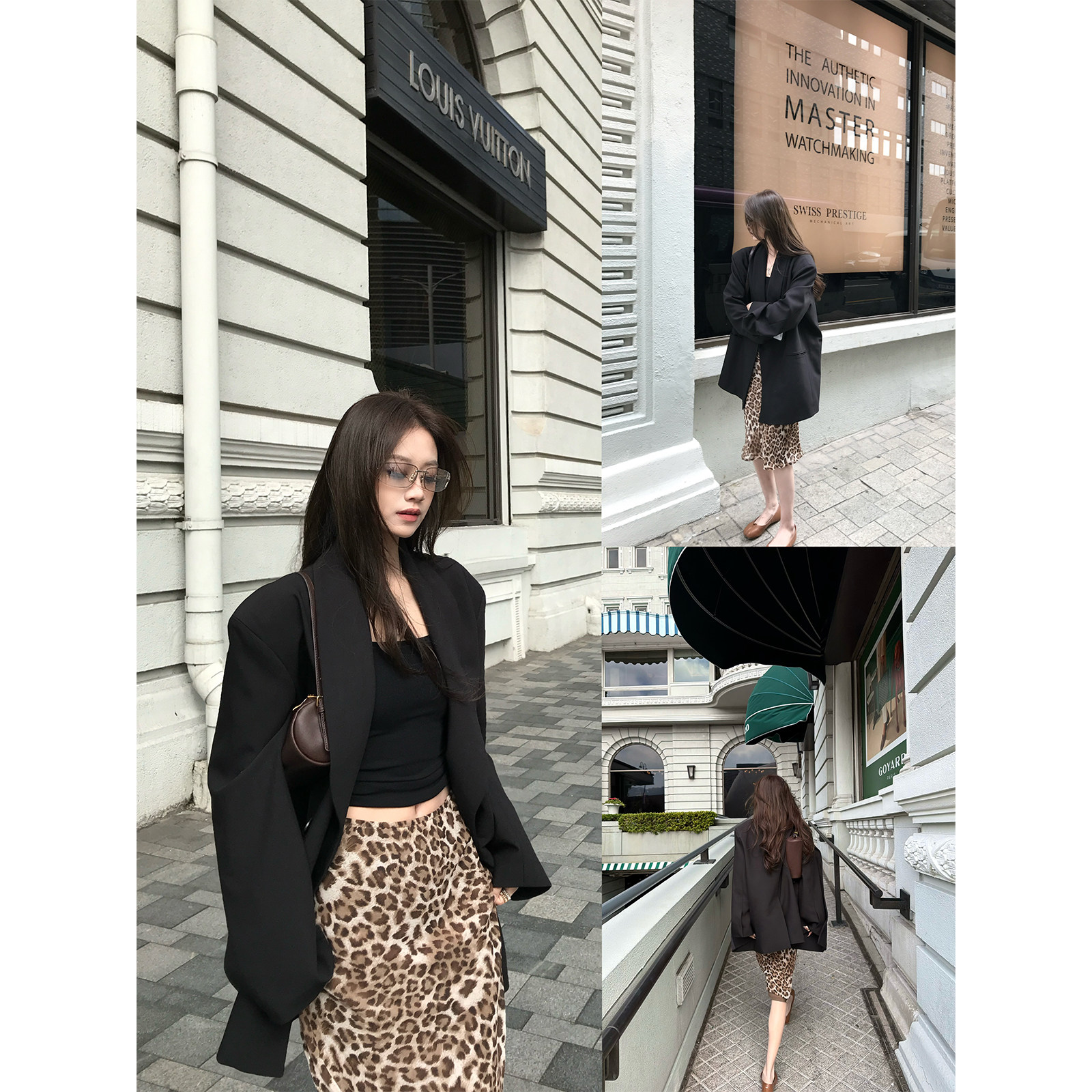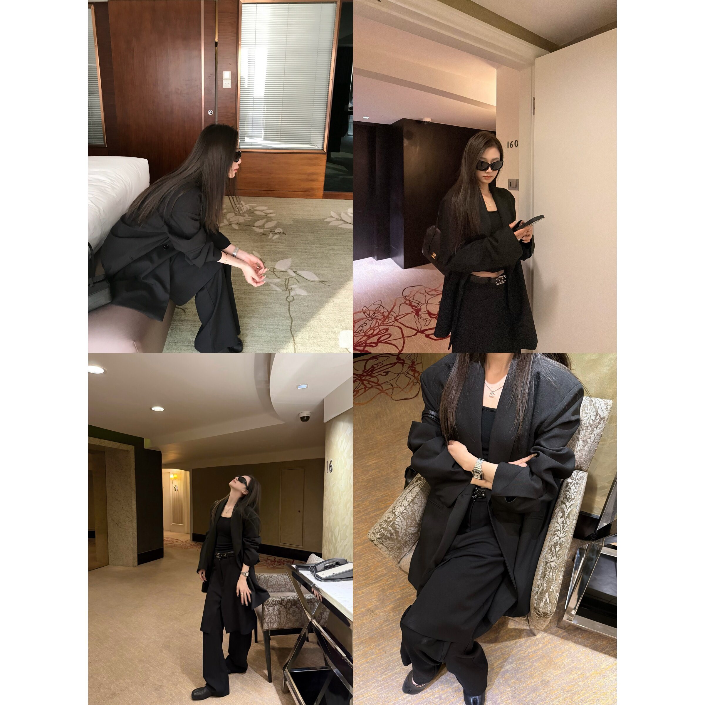 LEDIM WANG复古丝绒西装外套女2026春季新款黑色宽松廓形轻奢西服