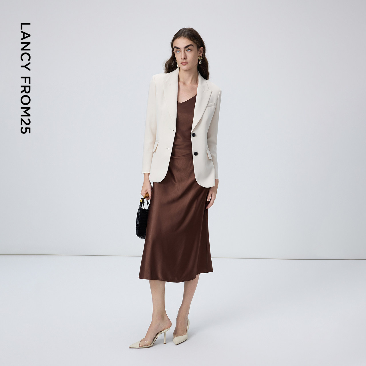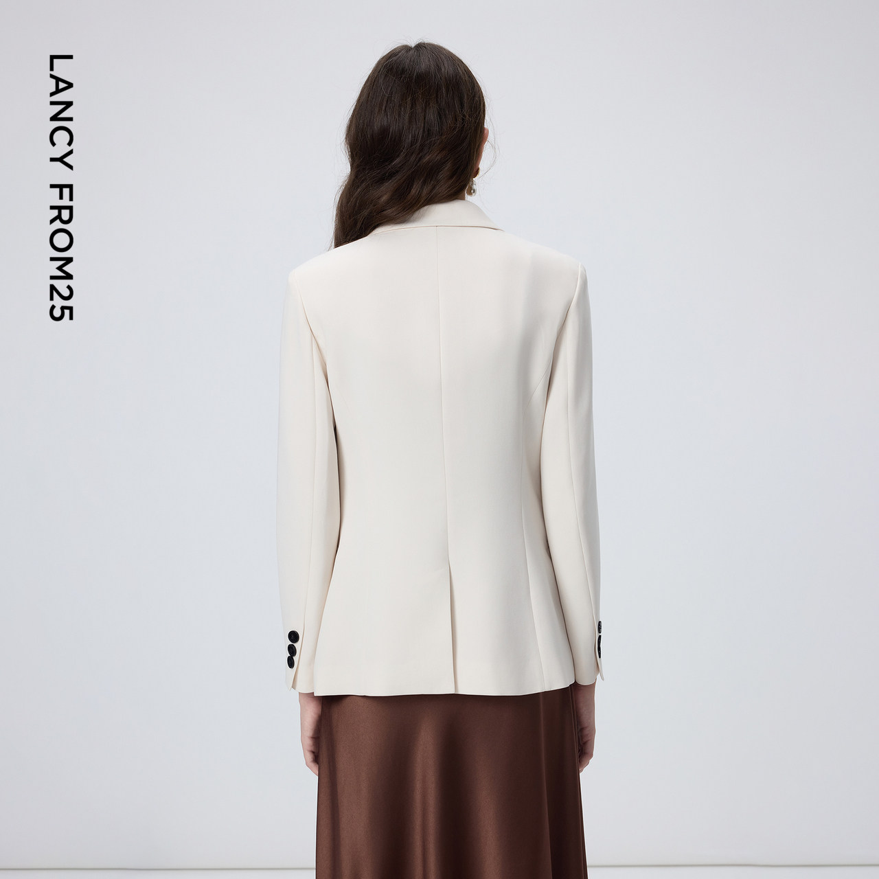 天猫朗姿25醋酸高级感职业白色西服外套女士春秋新款通勤气质百搭西装