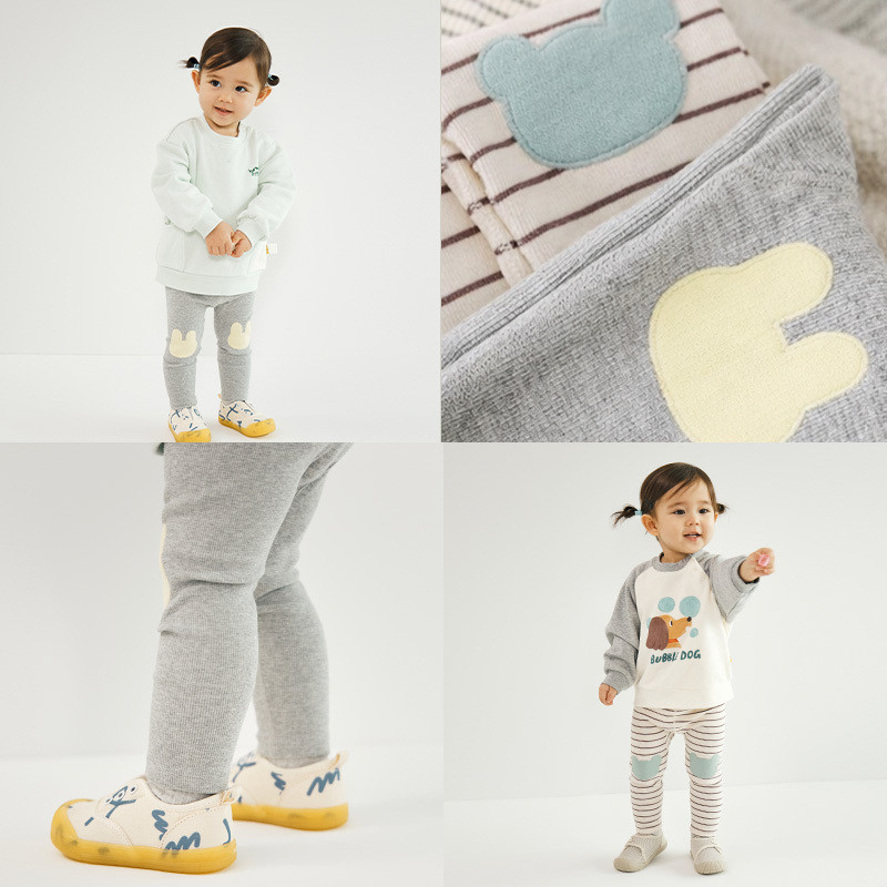 天尼多熊春季新款女童针织喇叭裤女宝宝薄绒打底裤弹力休闲长裤薄绒