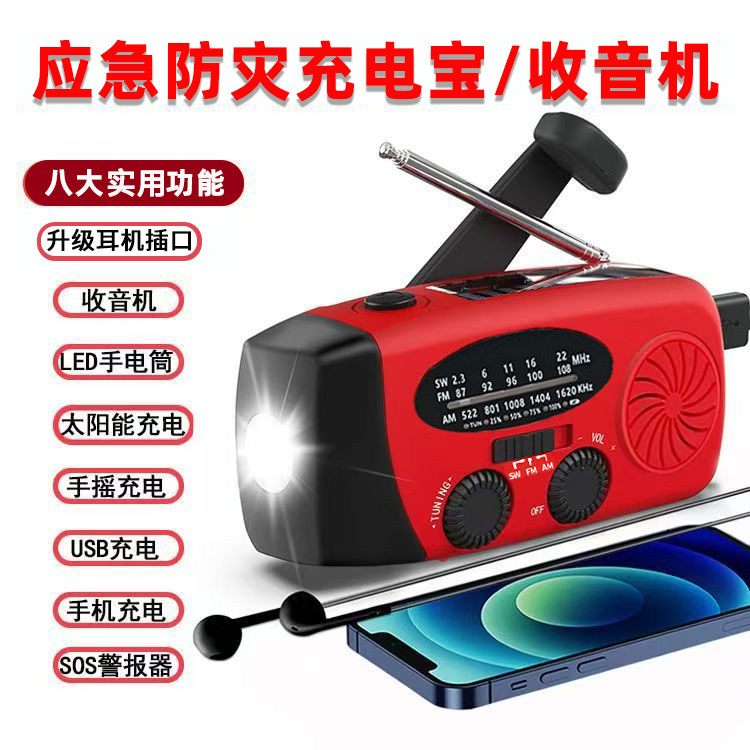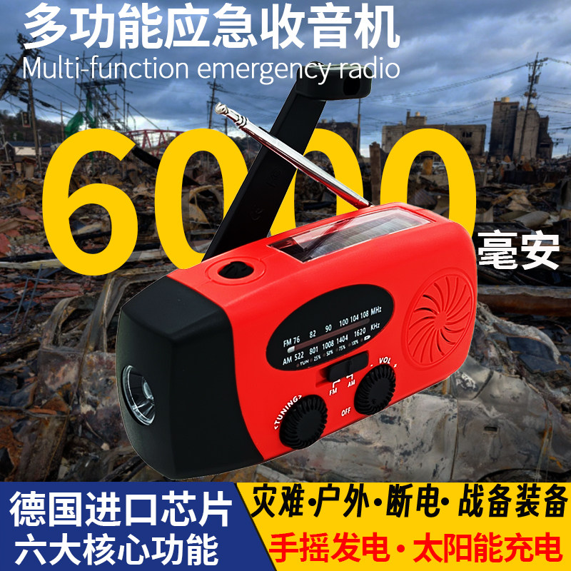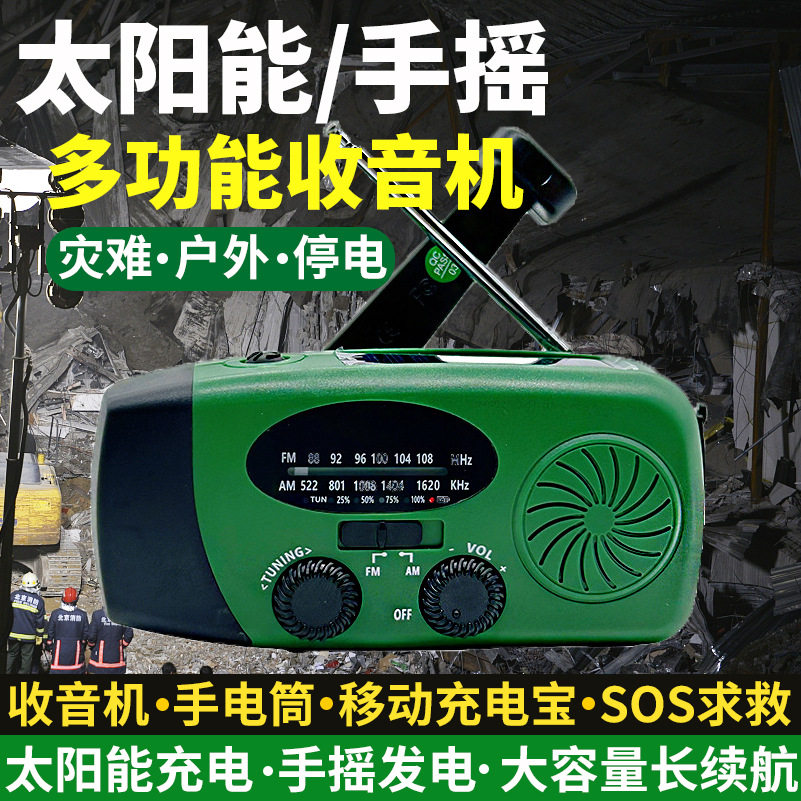 淘宝多功能收音机手摇发电筒应急太阳能不断电学生户外手机充电宝战备