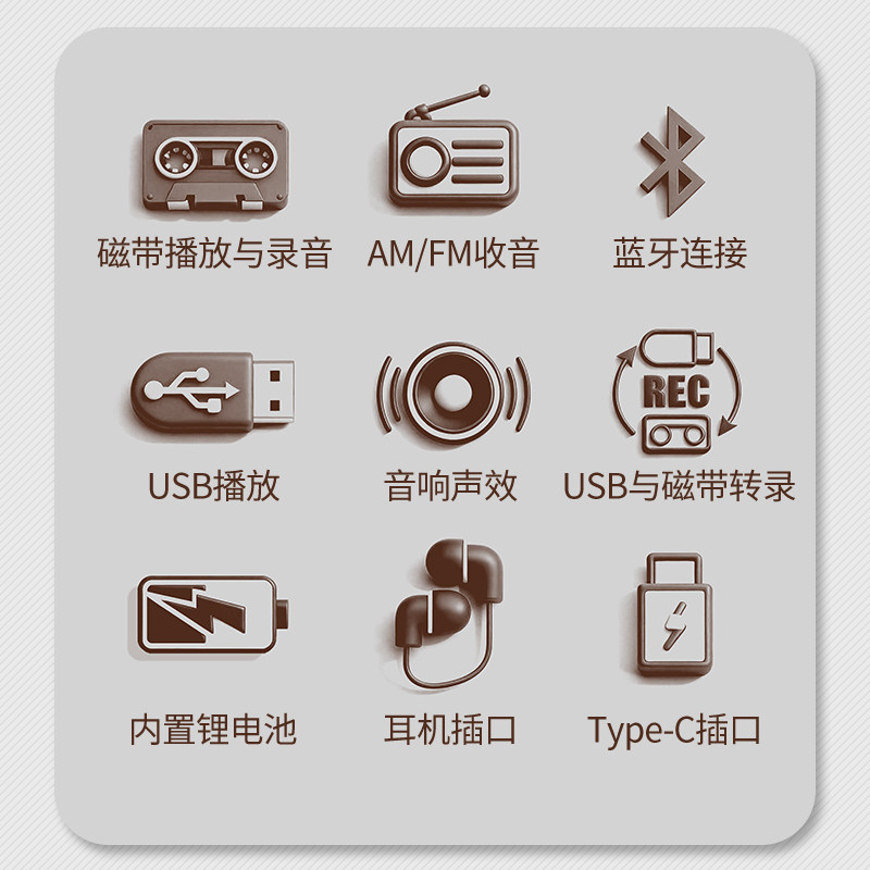熊猫6519新品复古蓝牙音响,融合经典磁带录音机与收音机功能,致敬上世纪怀旧风潮。外观采用复古工业设计,搭配金属旋钮与木质纹理,尽显年代质感。支持蓝牙5.0无线连接,可轻松播放手机音乐;内置高保真扬声器,音质醇厚饱满。同时保留传统功能,支持FM/AM收音、磁带播放及录音,满足怀旧情怀与实用需求。USB/TF卡播放、AUX输入一应俱全,兼容多种音源。无论是家居装饰、户外休闲,还是作为情怀礼物,熊猫6519都以匠心工艺重现经典,让现代科技与复古美学完美交融,唤醒记忆中的温暖旋律。