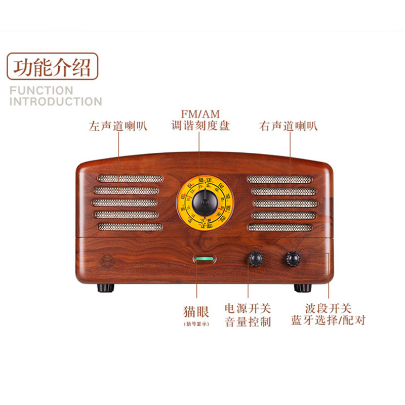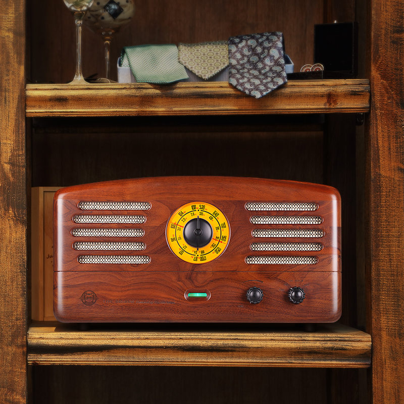 天德国柏林之声音效复古木质无线蓝牙音箱带遥控器桌面收音机音响