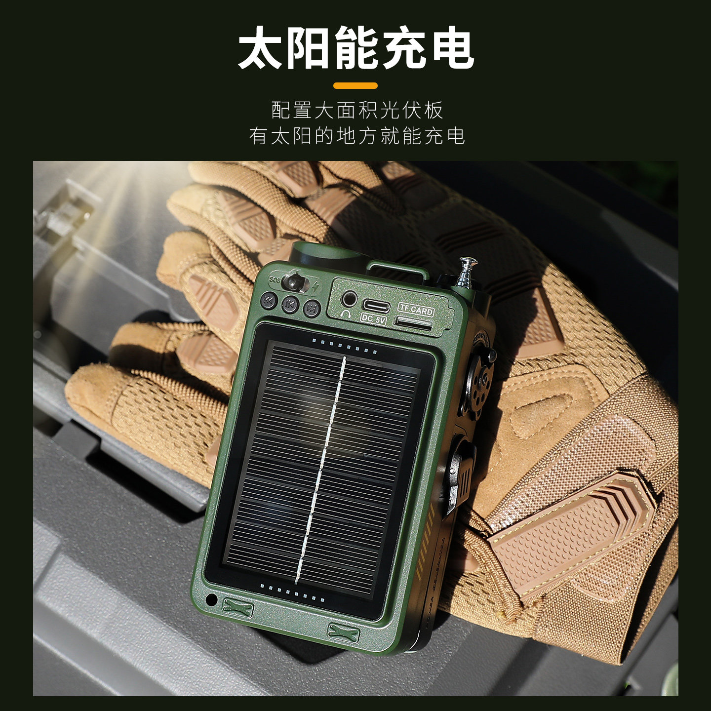 天猫全波段手摇发电收音机蓝牙音响手电筒应急灯多功能户外家用随身款