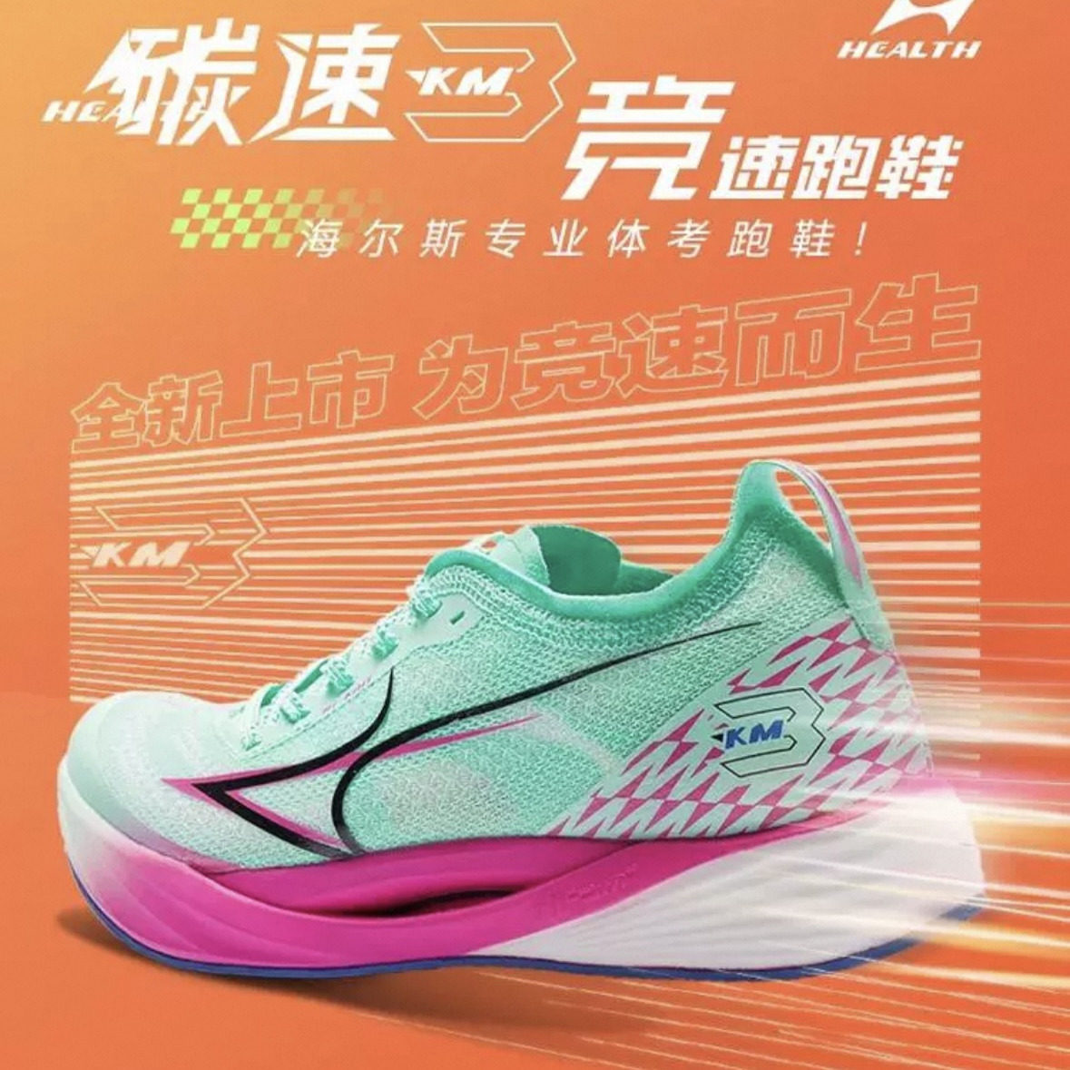 海尔斯KM3全掌碳板低帮体考竞速跑步鞋是一款专为体育考试与竞速训练打造的专业跑鞋,男女同款设计兼顾性能与实用性。搭载全掌碳纤维推进板,有效提升能量回馈与步幅效率,助力提速冲刺。中底采用高弹轻质泡棉材料,缓震出色且回弹强劲,降低长距离奔跑的疲劳感。低帮结构增强脚踝灵活性,贴合脚型,提升运动稳定性。鞋面轻盈透气,配合防滑耐磨橡胶大底,适应多种路面环境。无论是体考百米冲刺、800/1000米耐力跑,还是日常训练,KM3都能提供卓越支撑与速度表现,是追求成绩突破的跑者理想之选。