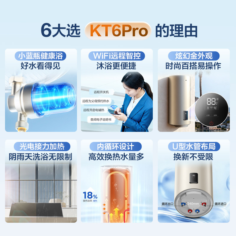 海尔新品小蓝瓶太阳能热水器电加热一体家用阳台壁挂保温桶KT6pro