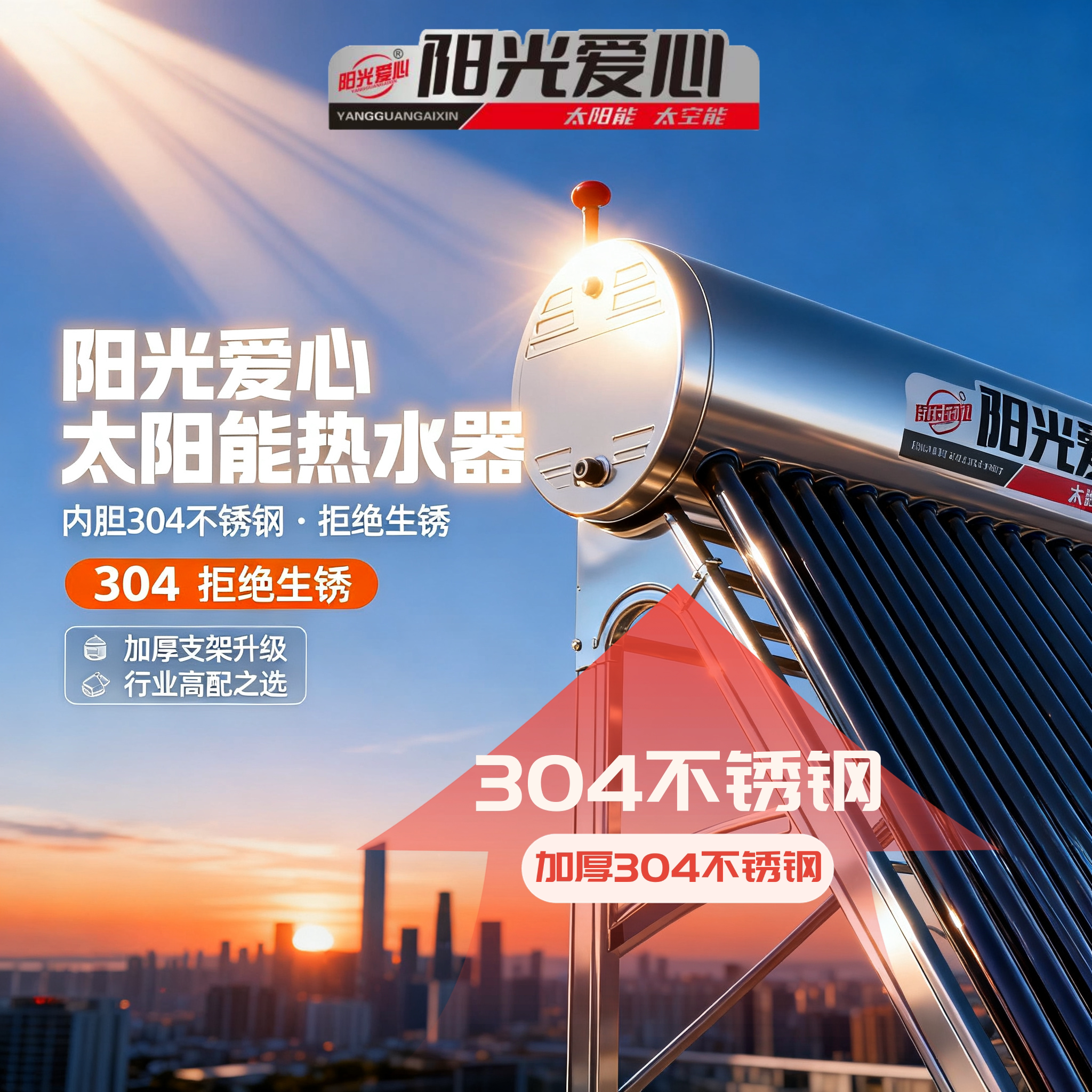淘宝太阳能热水器家用304不锈钢加厚内胆农村全自动光电两用厂家直销