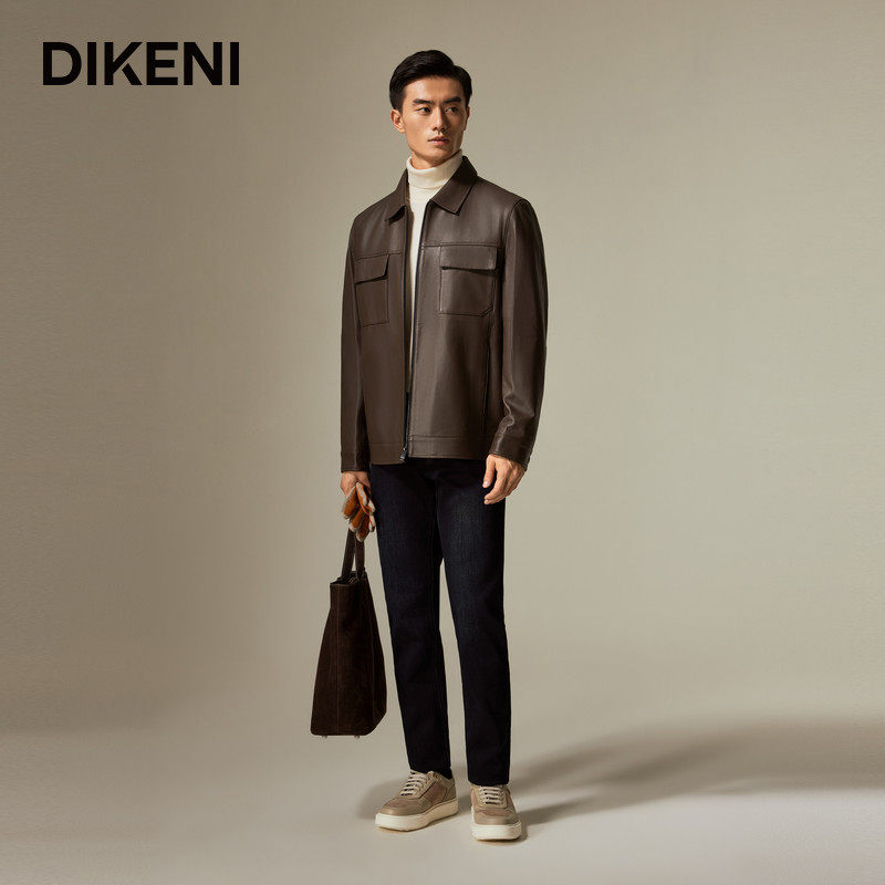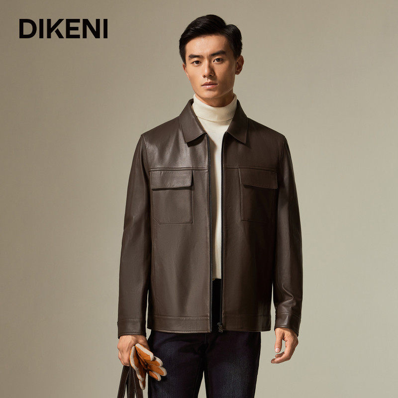 【经典1034系列】迪柯尼2023秋冬新品男士臻奢羊皮工装皮衣夹克,精选优质头层羊皮,触感柔韧细腻,兼具挺括廓形与舒适穿着体验。融合工装设计精髓,多口袋实用布局搭配精致金属扣件,彰显硬朗型格与都市雅痞风范。立体剪裁贴合身形,细节处匠心雕琢,如加固缝线与做旧工艺,提升整体质感与耐穿性。无论是搭配衬衫通勤,或叠穿针织休闲出街,皆能轻松驾驭,演绎低调奢华的精英气质。经典1034系列,以 timeless design 诠释现代男士的自信与品味,是秋冬衣橱中不可或缺的臻奢之选。