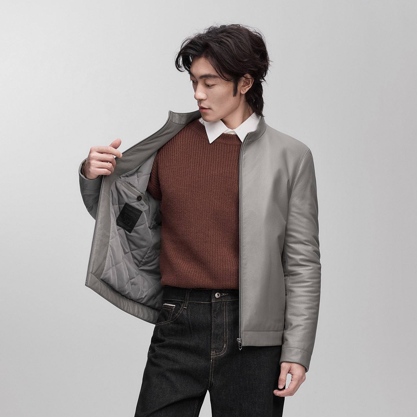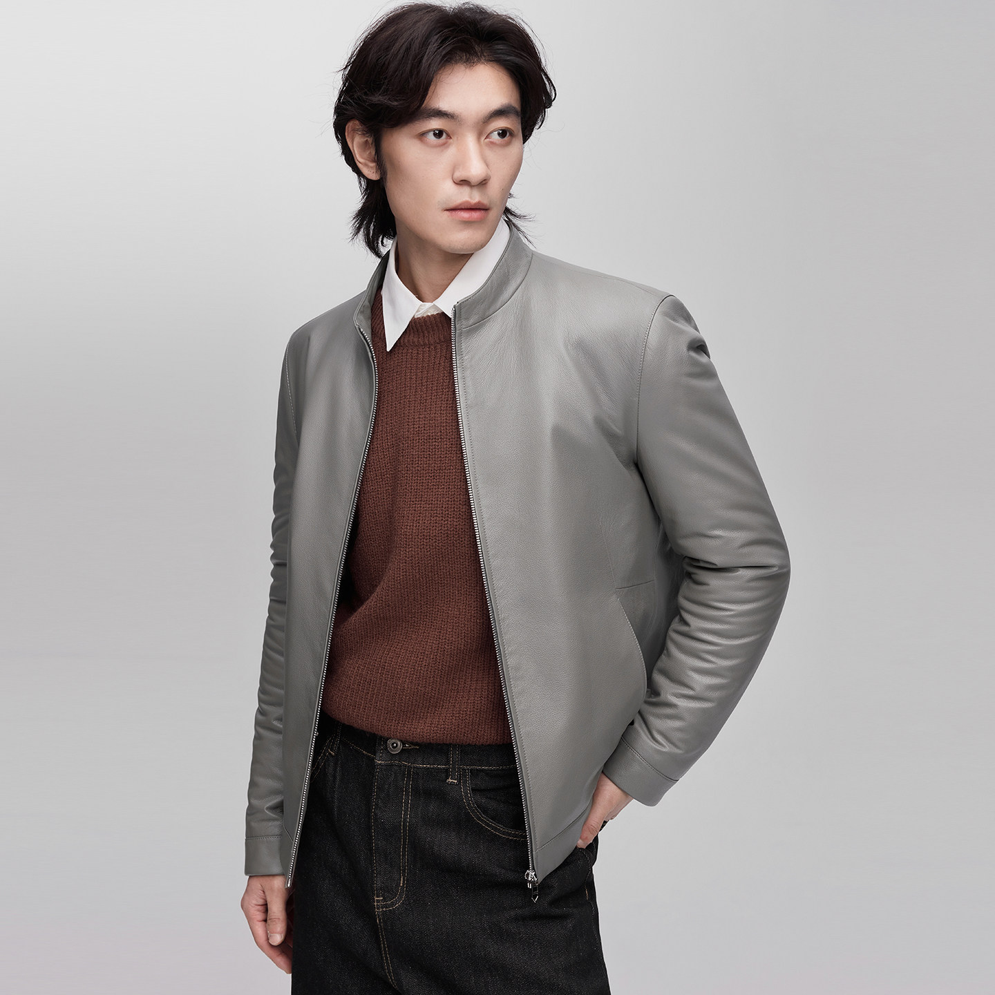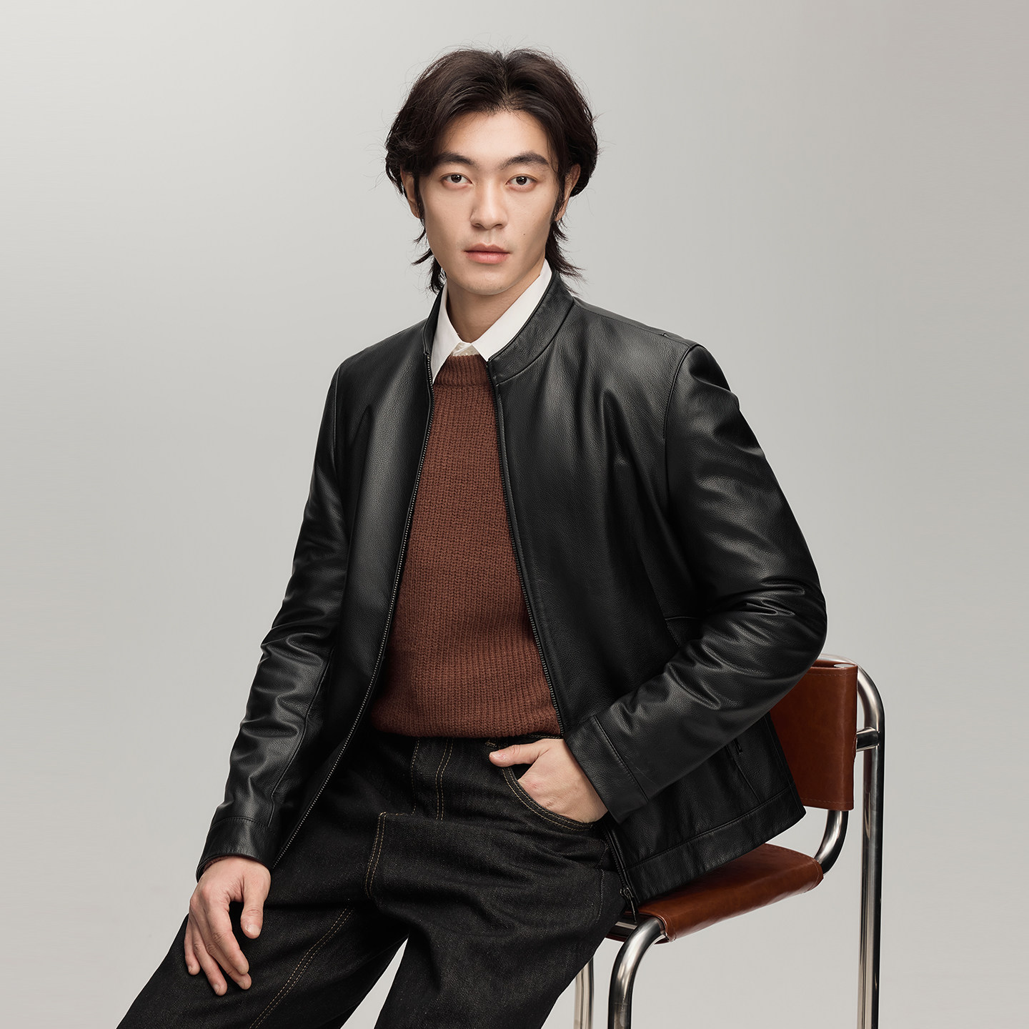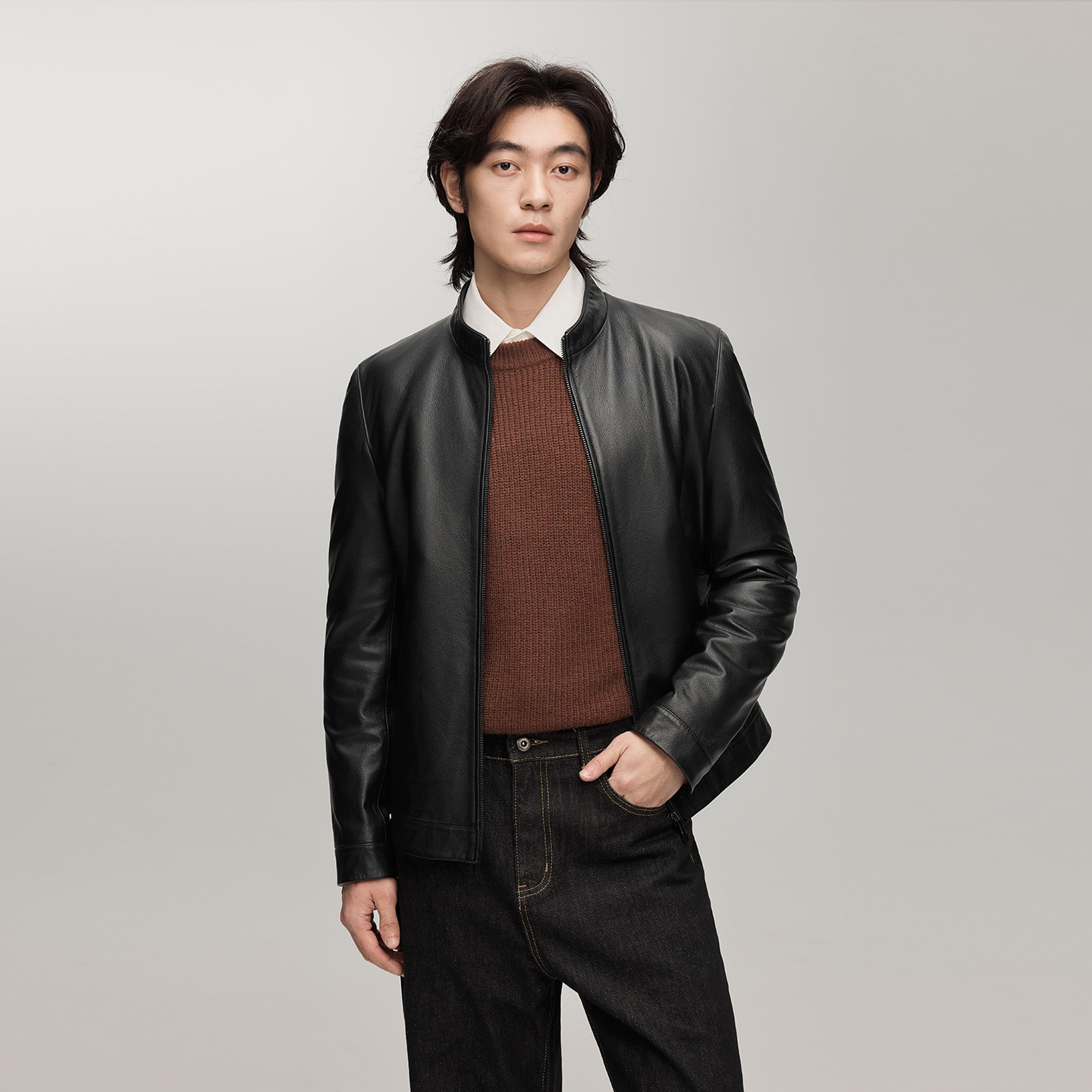 天猫雪豹25秋冬新款头层牛皮真皮皮衣男时尚专柜同款驼绒皮外套夹克