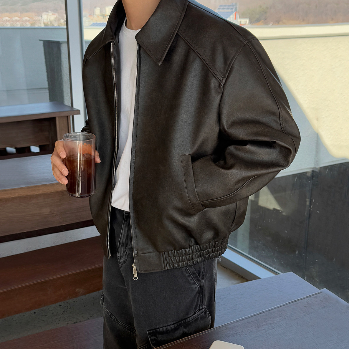 MRCYC复古风痞帅短款皮衣,融合经典机车元素与韩系休闲美学,是秋季通勤与日常穿搭的理想之选。采用优质仿皮材质,质感挺括且轻盈耐磨,短款剪裁凸显腰线,轻松拉长身形比例。宽松版型设计兼顾舒适度与潮流感,翻领搭配金属拉链,细节中透露出不羁的痞帅气质。无论是搭配卫衣、T恤还是衬衫,都能轻松打造街头感十足的韩系造型。适合多种场合,从日常出街到朋友聚会,尽显型格魅力。MRCYC以简约设计诠释复古态度,让穿搭既有态度又不失实穿性,是追求个性与风格男士的必备单品。