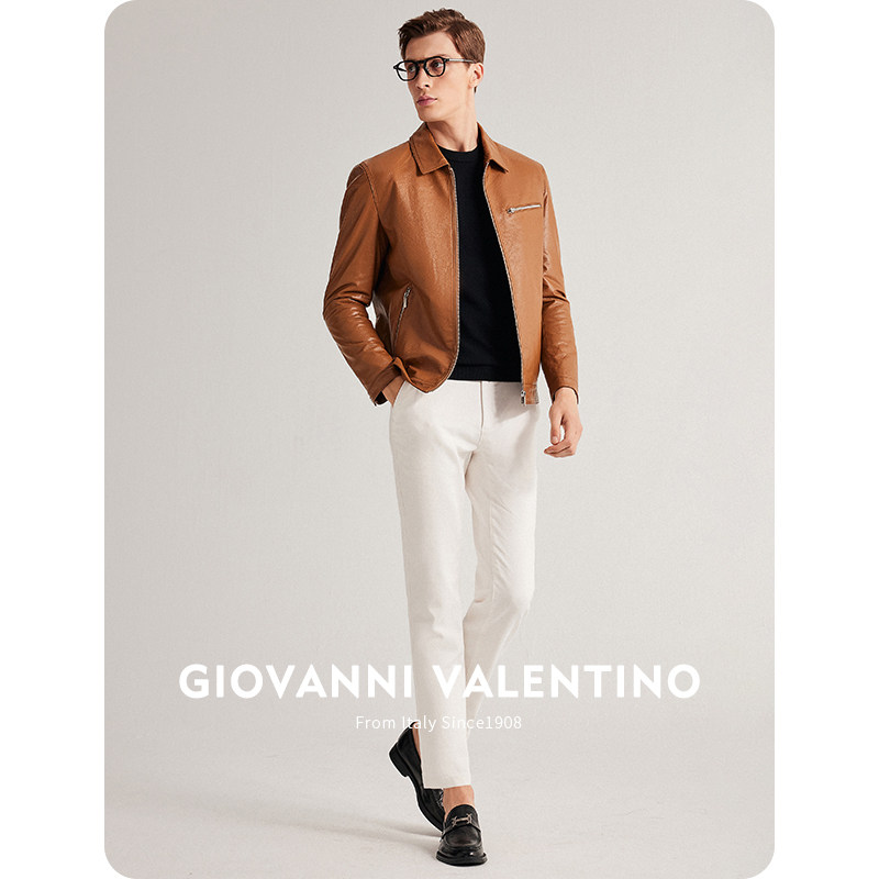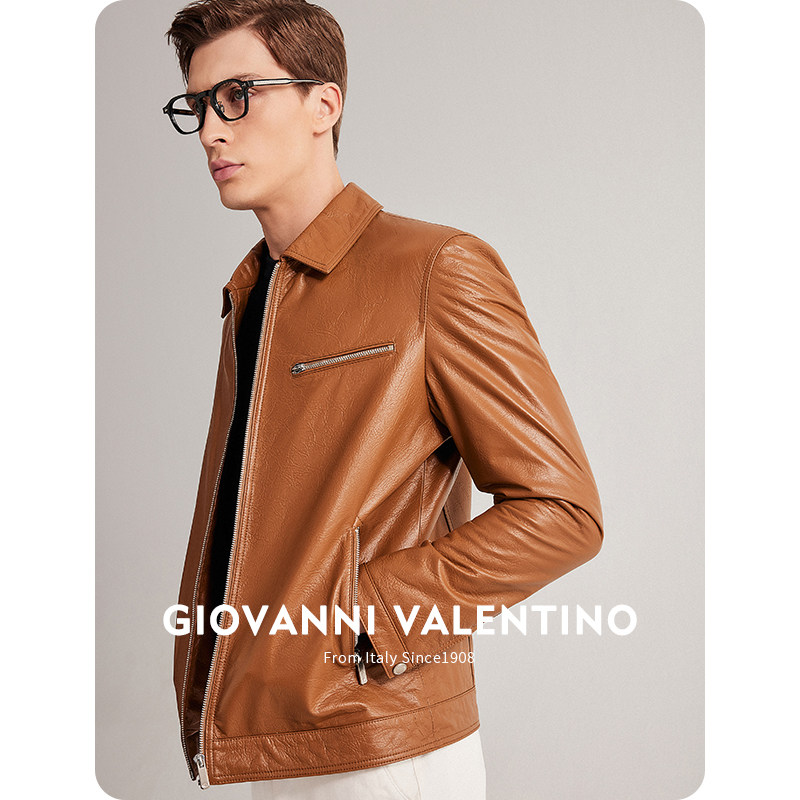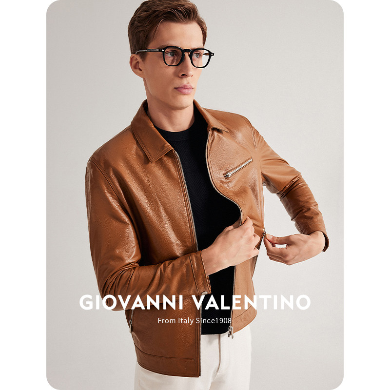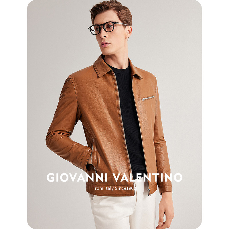 淘布拉德皮特【国产头层牛皮】男翻领修身真皮衣