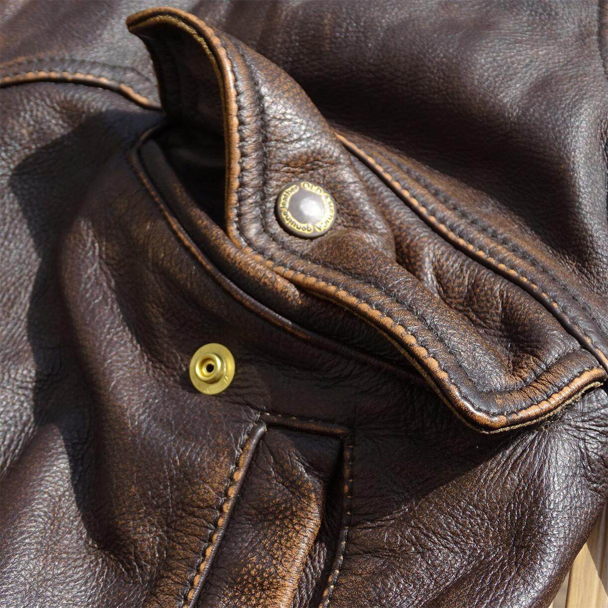 3千件大量现货抛售!后腰带短版司闸员蜡染头层牛皮男真皮皮衣