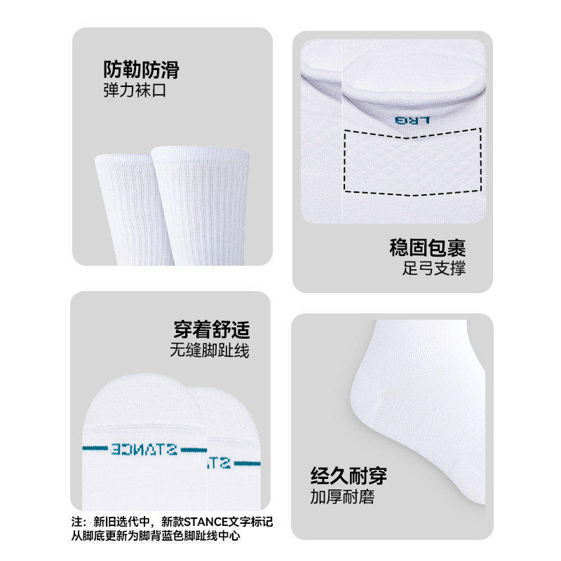 天STANCE袜子男袜女袜经典ICON夏季白色时尚潮袜休闲中筒袜透气棉袜