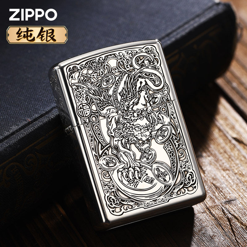 天猫ZIPPO打火机正品煤油防风正版纯银招财貔貅男士生日礼物高端定制