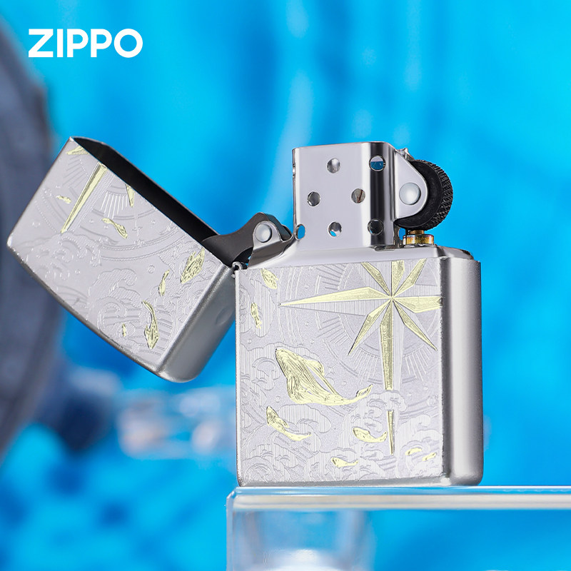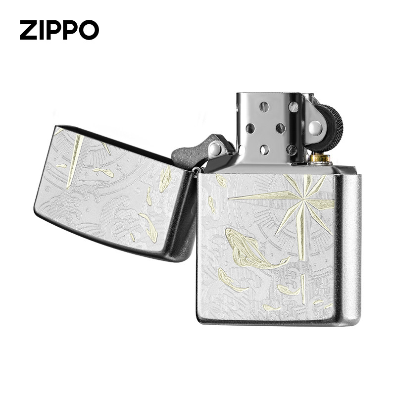 天猫zippo打火机 热恋浪潮指南针煤油防风52HZ赫兹磨砂雕刻新年礼物男
