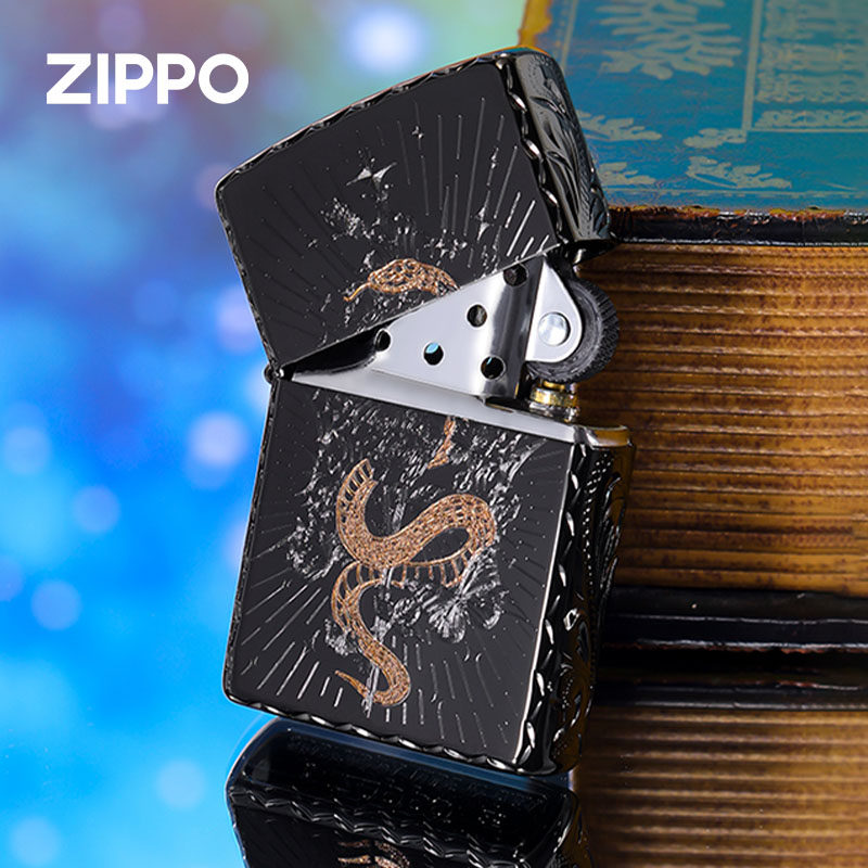 天猫zippo打火机玫蛇星辉-黑耀冰正品煤油防风生日情人节礼物送男朋友