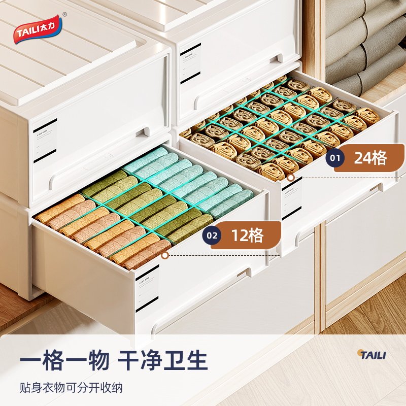 天猫太力衣柜收纳箱抽屉式塑料家用衣服衣物内衣收纳盒桌面储物整理箱
