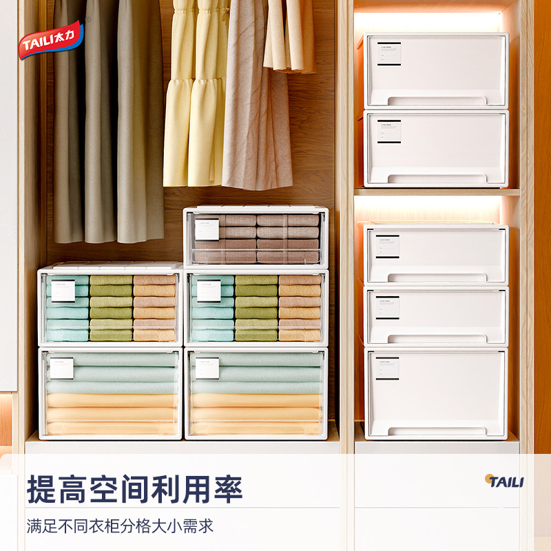 太力收纳箱抽屉式衣服家用储物收纳神器衣橱衣物整理箱衣柜收纳盒