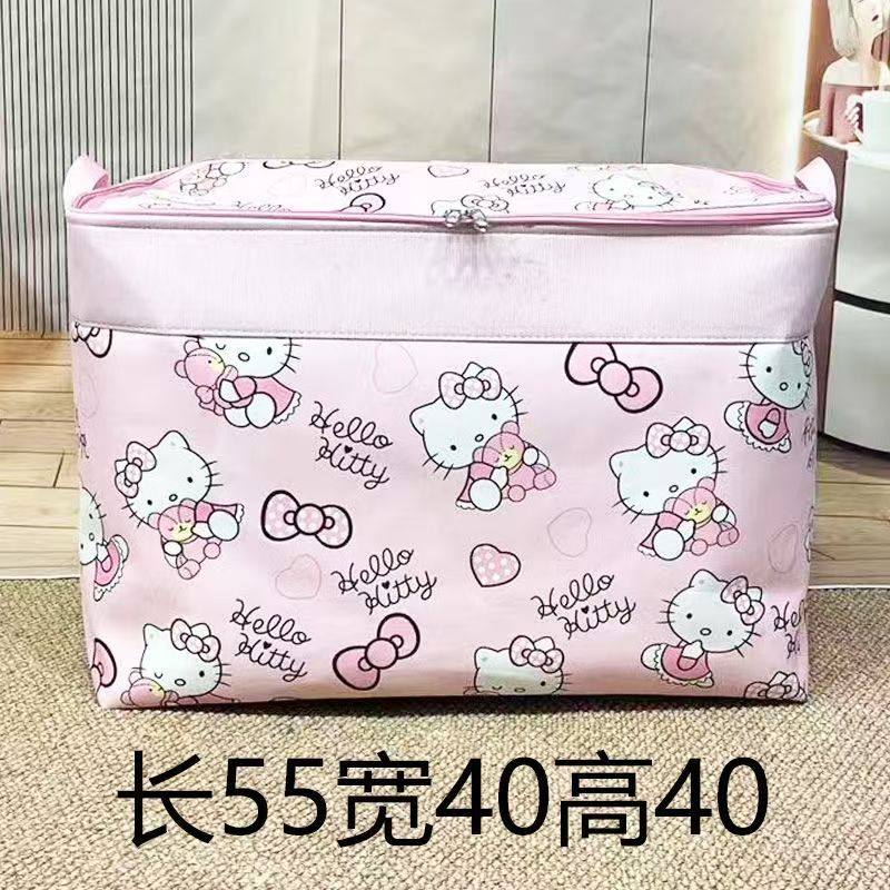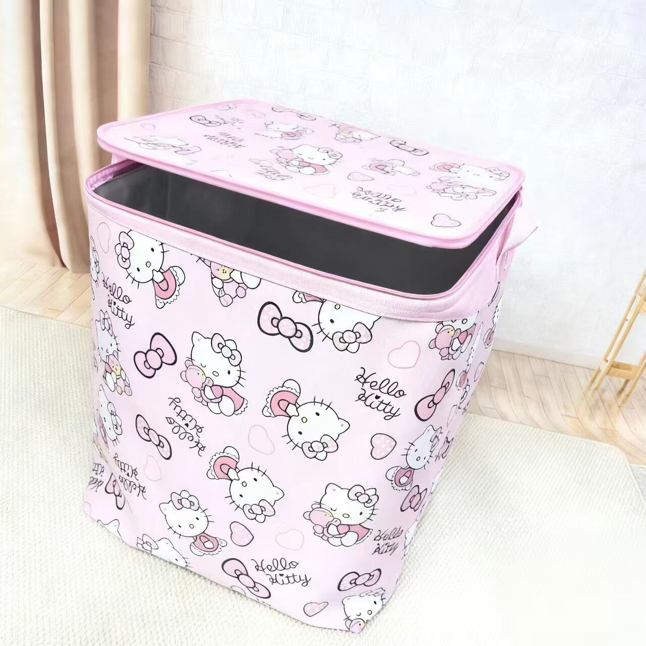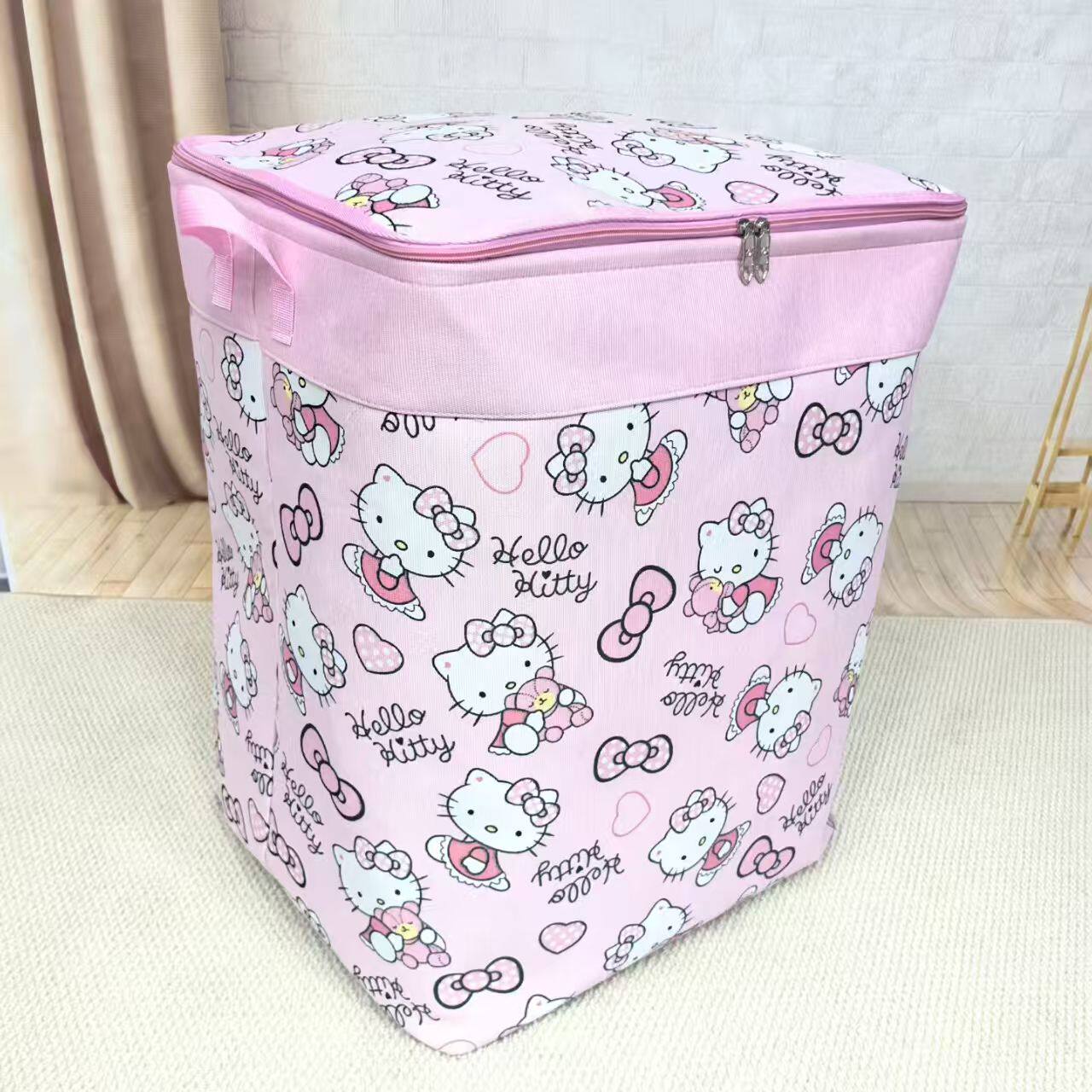 天猫粉色猫咪衣物收纳卡通印花收纳箱大容量可折叠带盖布艺整理箱