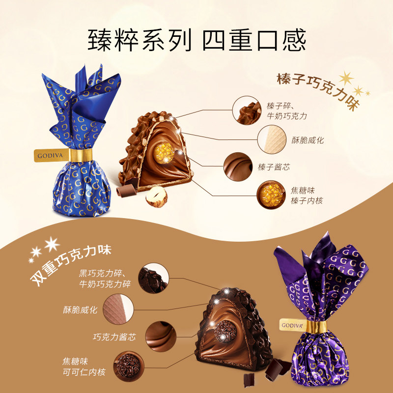 【满赠惊喜】Godiva歌帝梵黑巧牛奶巧克力休闲高端零食生日礼物