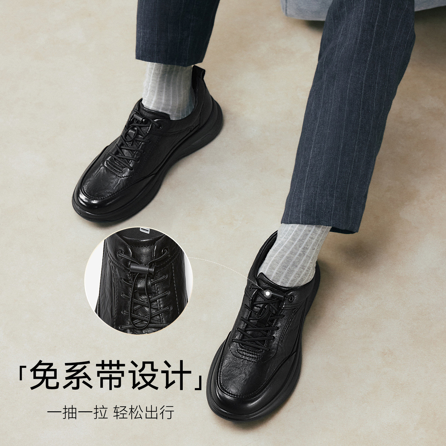 百思图26春季商场新款真皮男士皮鞋99021AM6,融合商务与休闲双重风格,专为现代都市男性打造。采用优质头层牛皮,质感细腻,透气耐穿,搭配柔软内里与缓震鞋垫,长时间行走亦舒适自在。鞋型简约大气,线条流畅,适配西装裤或休闲裤,轻松驾驭通勤、会议与日常出行等多元场景。防滑耐磨橡胶大底,抓地力强,行走稳健。细节处彰显匠心,金属鞋带扣与精致缝线提升整体质感。99021AM6不仅是鞋履,更是品味与自信的体现,为春日穿搭注入优雅与活力,是男士衣橱中不可或缺的百搭单品。