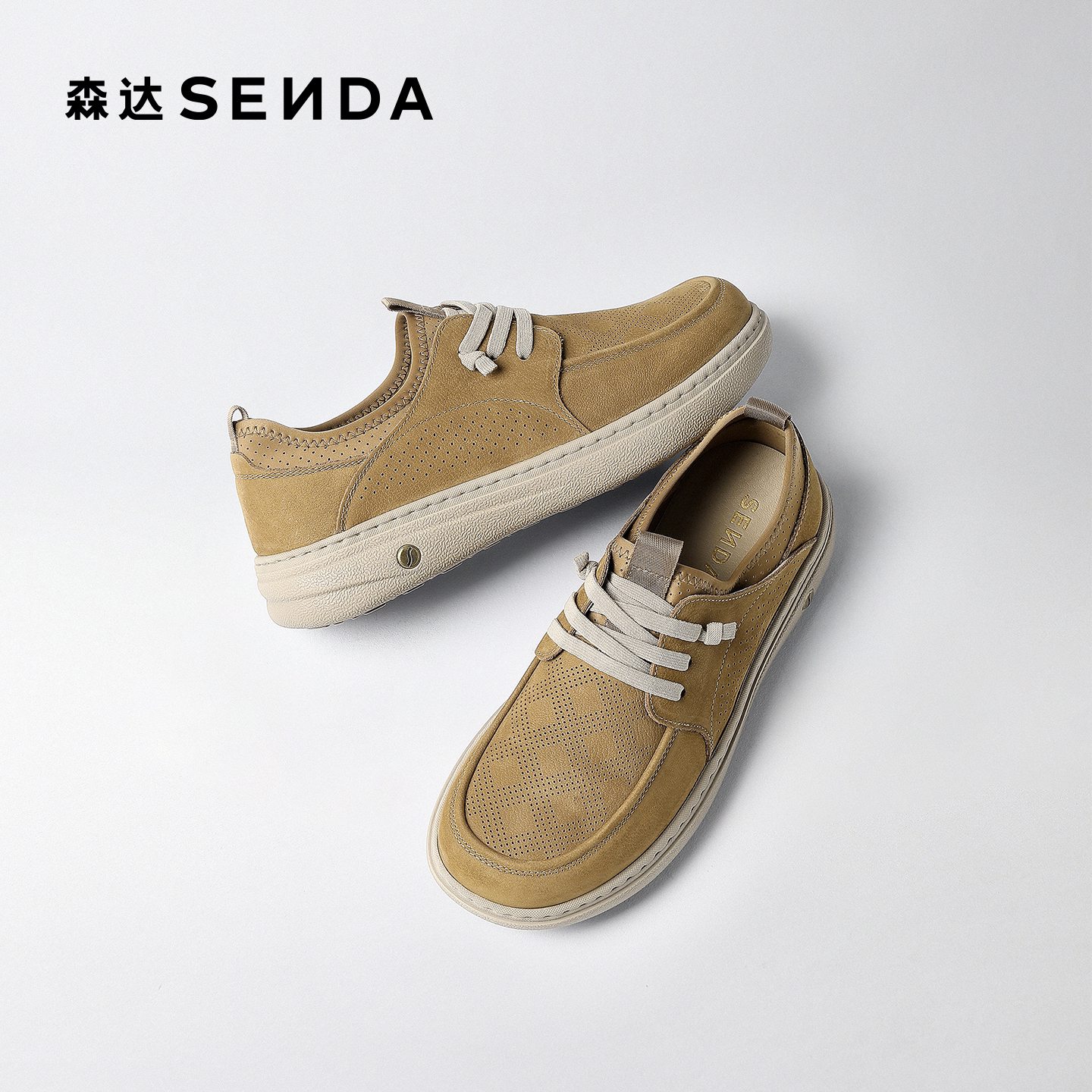 天猫森达休闲皮鞋男2026夏新商场同款打孔透气厚底百搭休闲鞋2DY01BM6