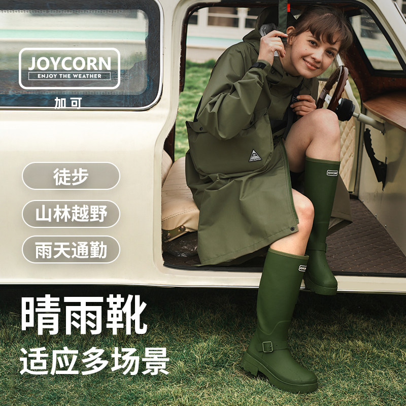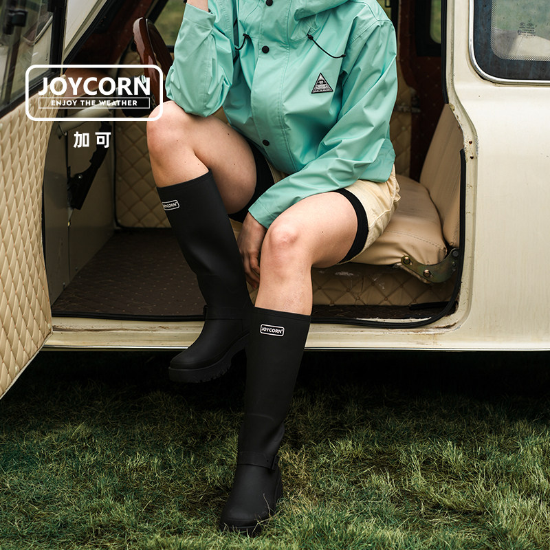 天猫Joycorn加可 厚底高筒雨靴女性 惠灵顿雨靴 户外雨鞋长筒靴骑士靴