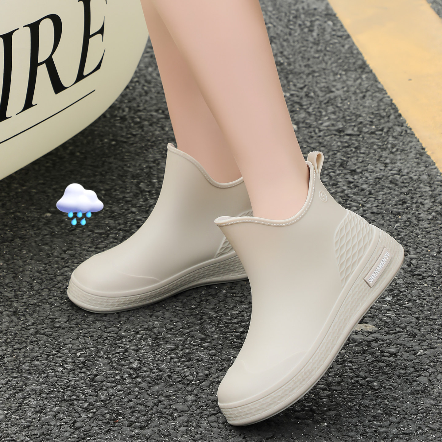 天猫雨鞋女款2026新款短筒加绒可爱水鞋厨房工作胶鞋女式软底舒适雨靴
