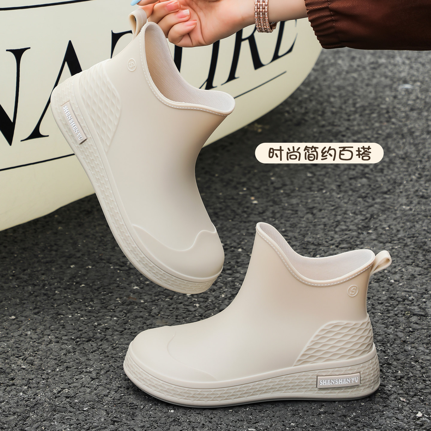 2026年新款女款短筒加绒雨鞋,融合时尚与实用,专为现代女性打造。采用优质环保橡胶材质,防水防滑,轻松应对雨天、厨房或户外清洁等场景。内里加厚绒毛设计,保暖舒适,秋冬穿着不冻脚。短筒版型简约利落,搭配可爱印花或纯色设计,俏皮又百搭。软底防滑大底,行走轻盈静音,久穿不累。无论是雨天出行、厨房劳作,还是庭院打理,这款雨靴都能提供贴心防护。轻便易穿脱,易清洁打理,是居家与户外必备的多功能水鞋,兼顾颜值与舒适,让每一步都安心自在。