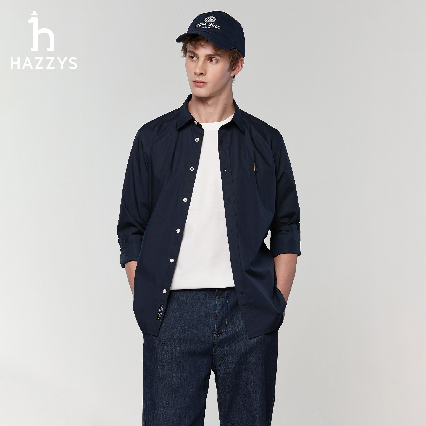 天猫【春夏甄选】Hazzys哈吉斯春季男装经典商务长袖上衣通勤衬衫上装