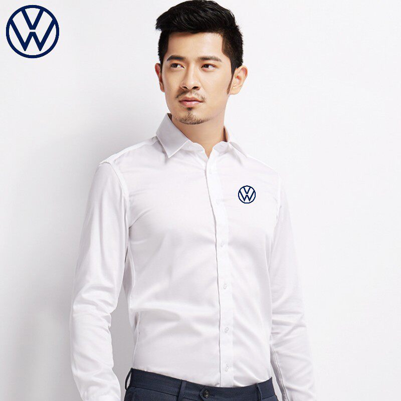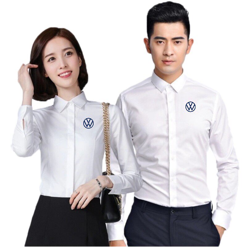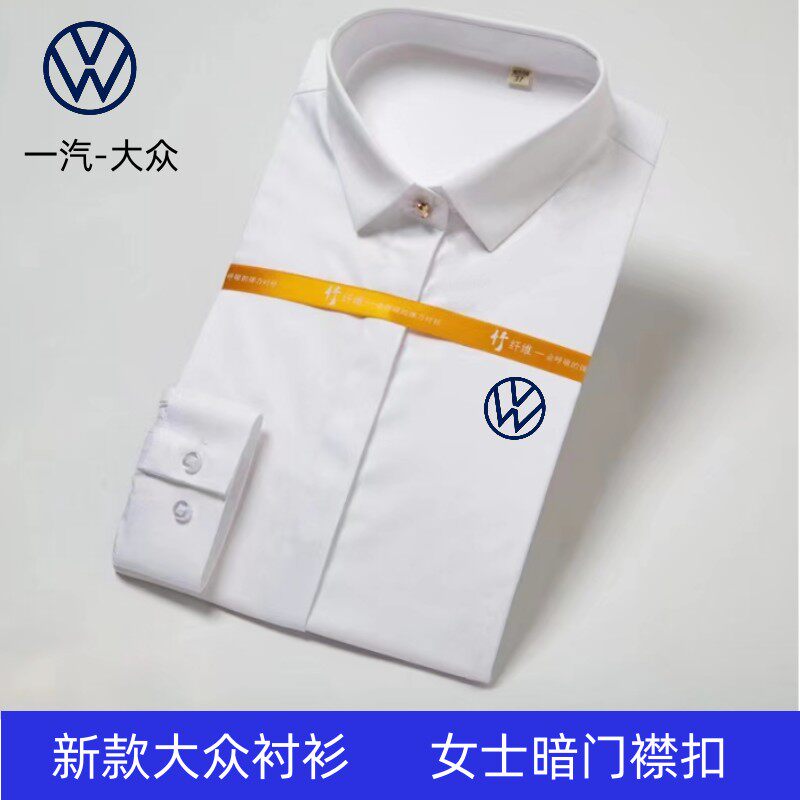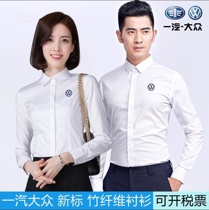 淘宝一汽大众衬衫工作服汽车4S店工装男女免烫竹纤维弹力白衬衫绣LOGO