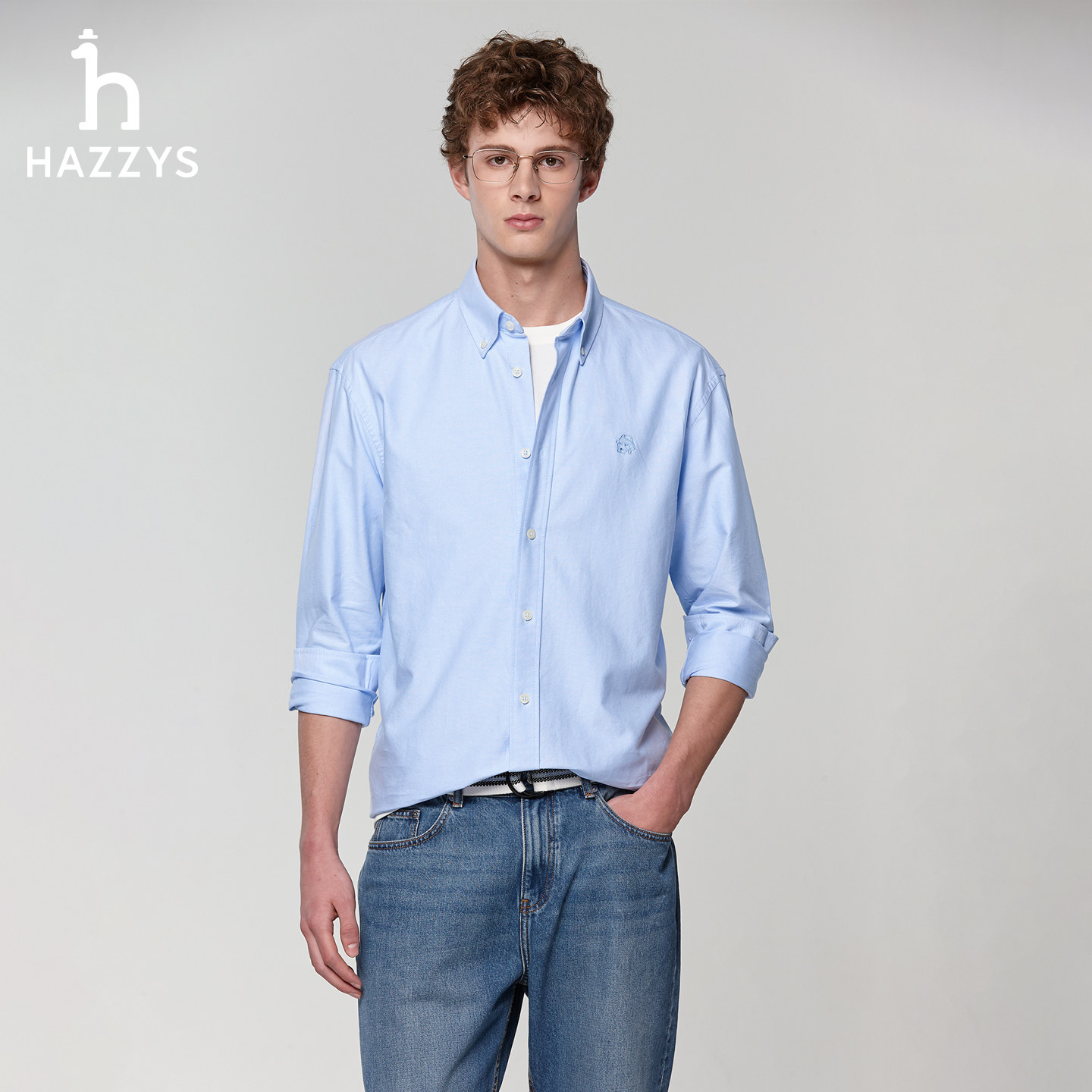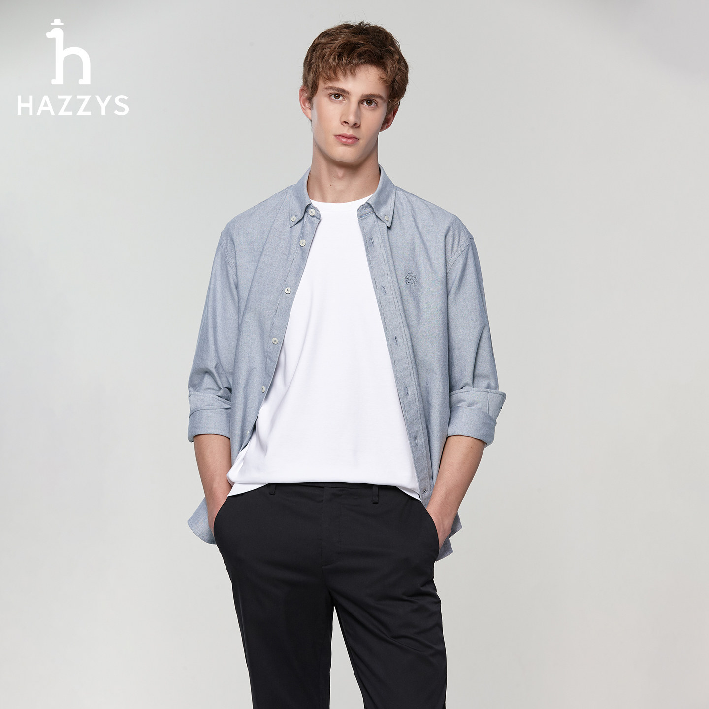 天猫【挺括牛津纺】Hazzys哈吉斯男士春季新款纯棉衬衣宽松版长袖衬衫
