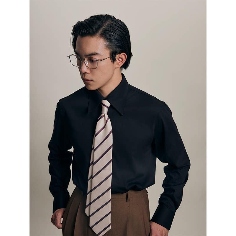 淘宝【一片领】平圆方中黑色通勤衬衫男款商务休闲西装抗皱长袖衬衣