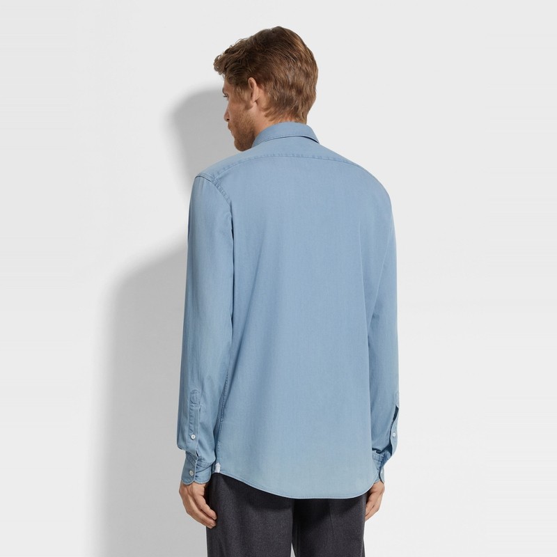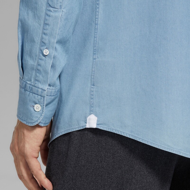 天猫ZEGNA杰尼亚男装浅蓝色棉质牛仔衬衫