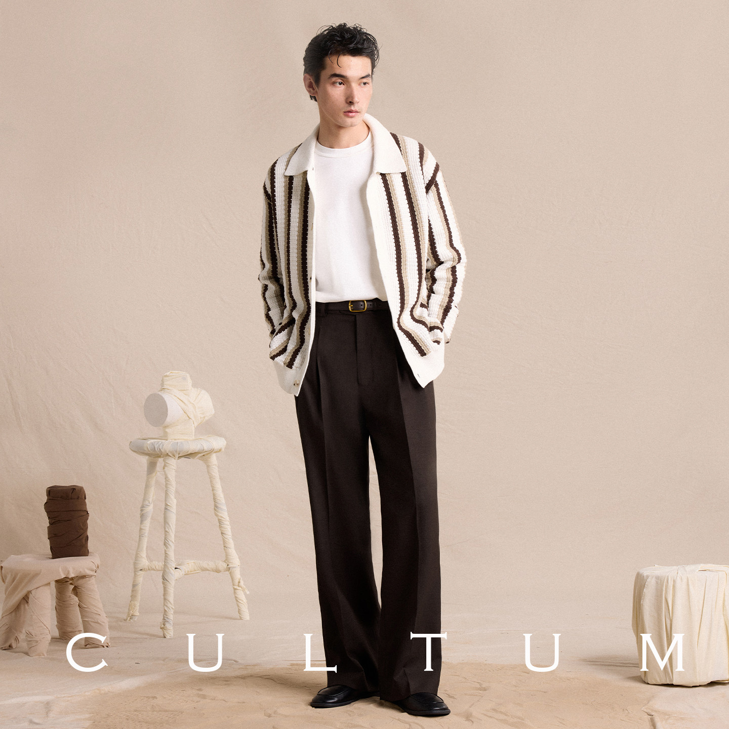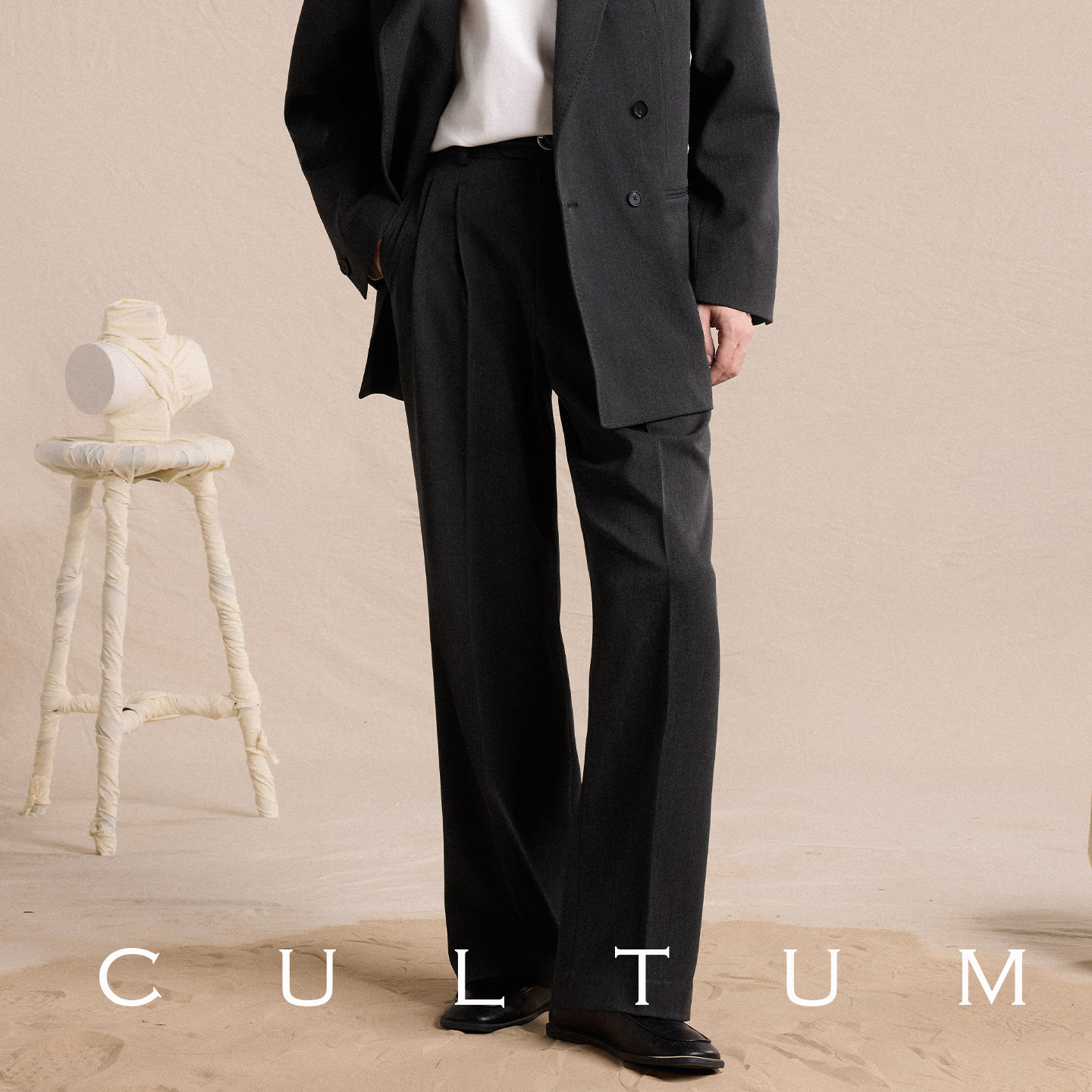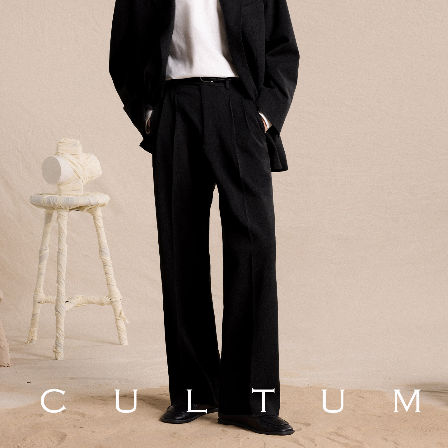 【轻盈垂感】CULTUM羊毛混纺春秋好莱坞裤,采用高品质羊毛混纺面料,触感柔软,垂坠感出众,穿着轻盈舒适。极简微喇设计融合经典与时尚,修饰腿型,彰显男士优雅气质。高腰剪裁搭配利落线条,轻松打造都市精英风范。百搭特性使其可轻松驾驭商务、休闲等多种场合,搭配衬衫或针织衫皆显品味。精湛工艺确保版型挺括、耐穿不易变形。无论是春秋通勤还是日常出行,这款西裤都是现代男士衣橱中不可或缺的时尚单品,诠释低调奢华与实用主义的完美平衡。
