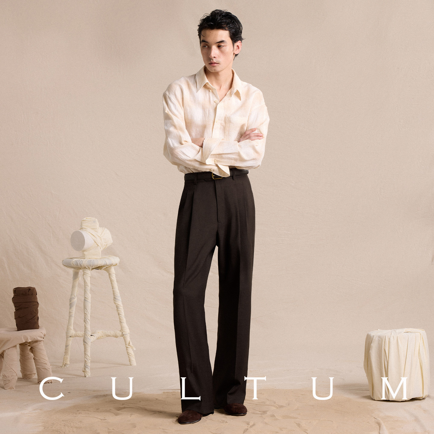 淘CULTUM春夏法国亚麻那不勒斯单褶高腰西裤男春夏轻薄透气直筒裤子