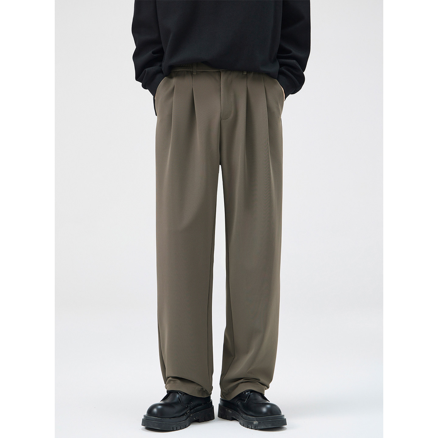淘男笙 【高品质TR色纺不掉色】春夏季三本针压褶A字宽松阔腿西裤男