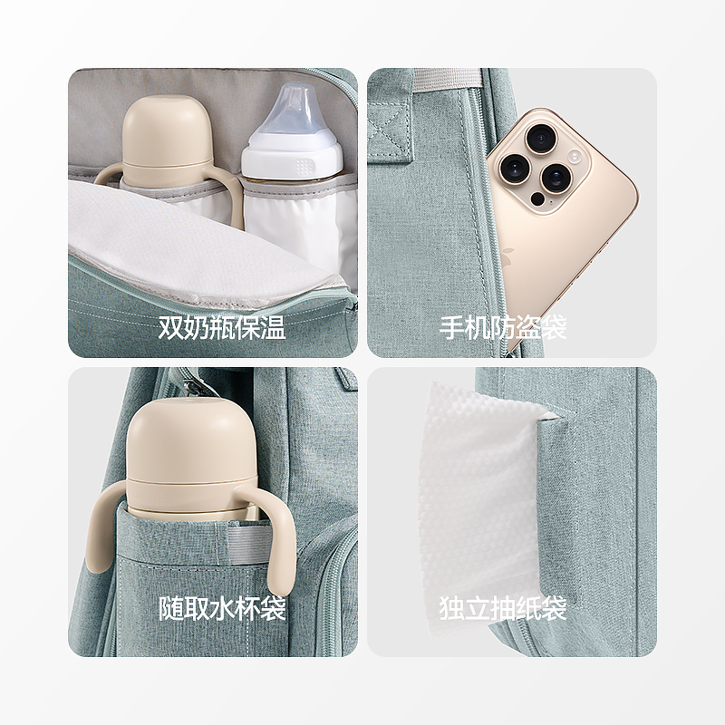 淘Qminica 2025官网夏季新超轻便妈咪包双肩大容量妈妈外出母婴包袋