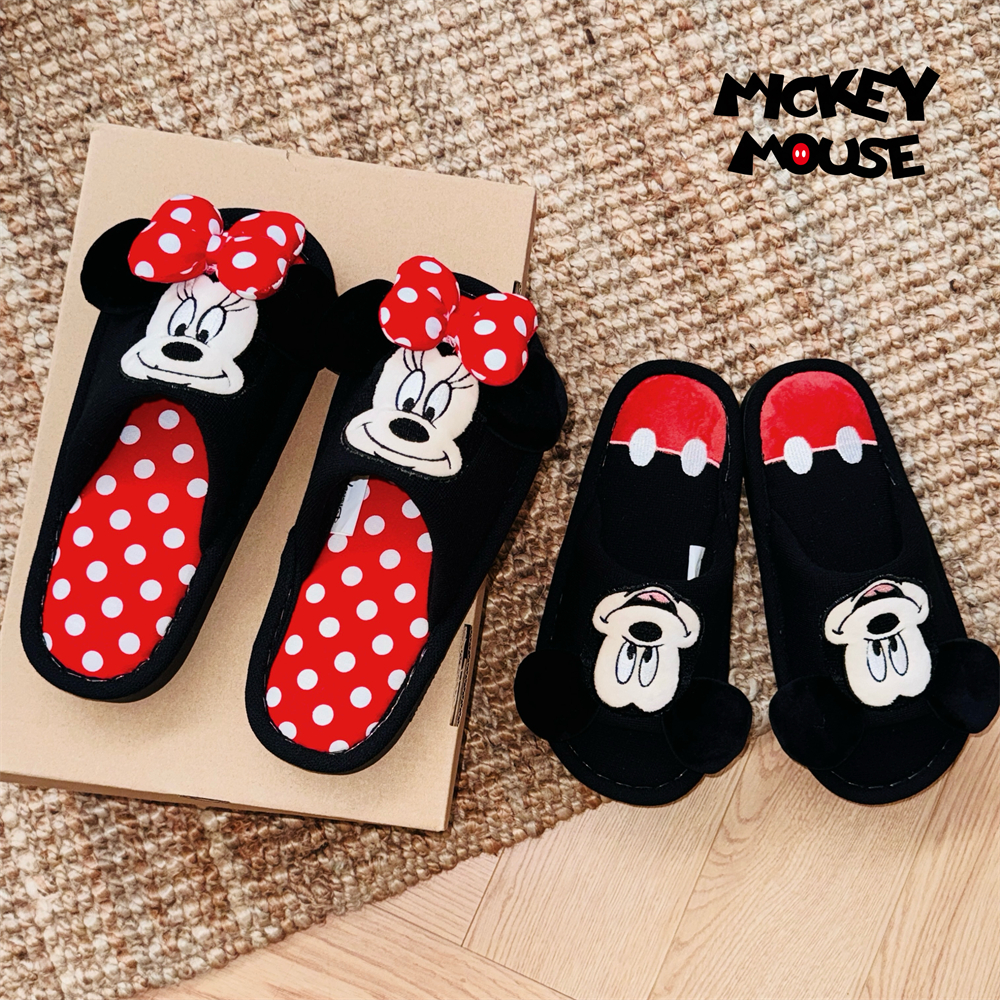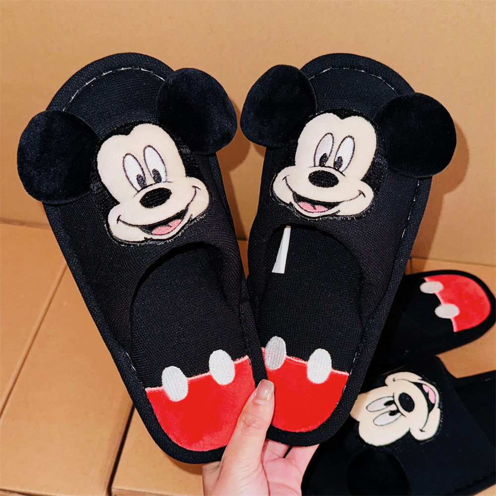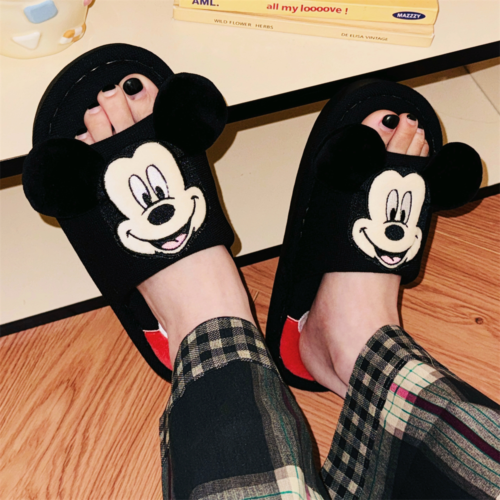 淘宝细细条 正版迪士尼米奇情侣棉麻拖鞋可爱居家春夏吸汗地板鞋男女